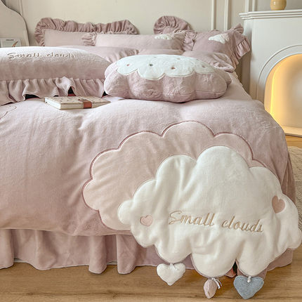 ins少女心加厚保暖牛奶绒床上四件套冬季珊瑚绒双面加绒床裙网红4