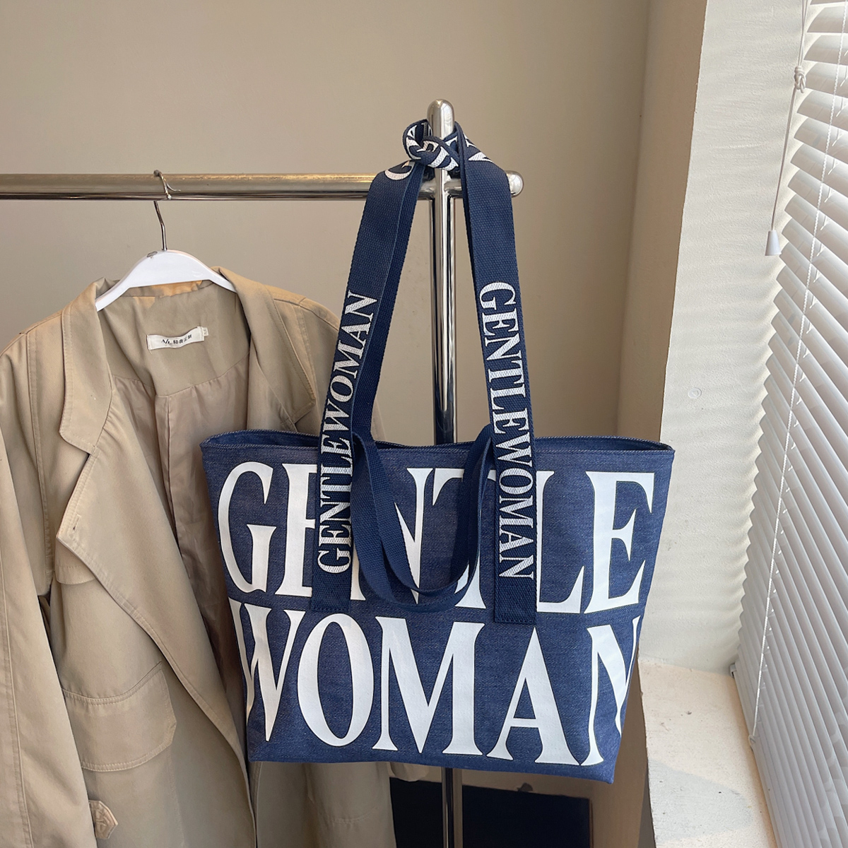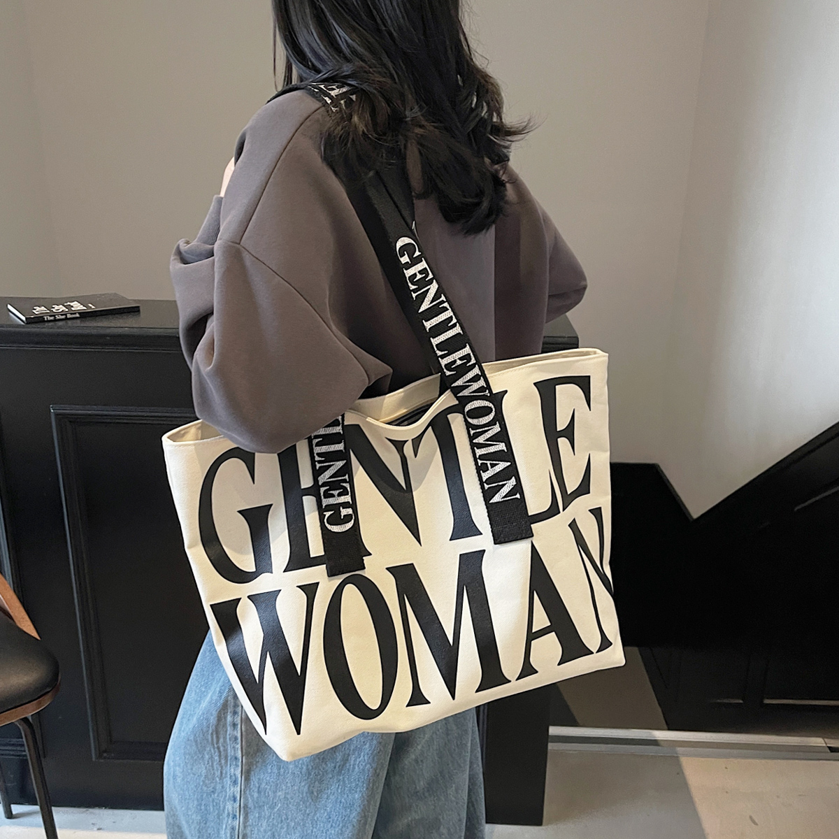 大容量字母gentlewoman帆布包包女泰国潮牌单肩托特包手提购物袋