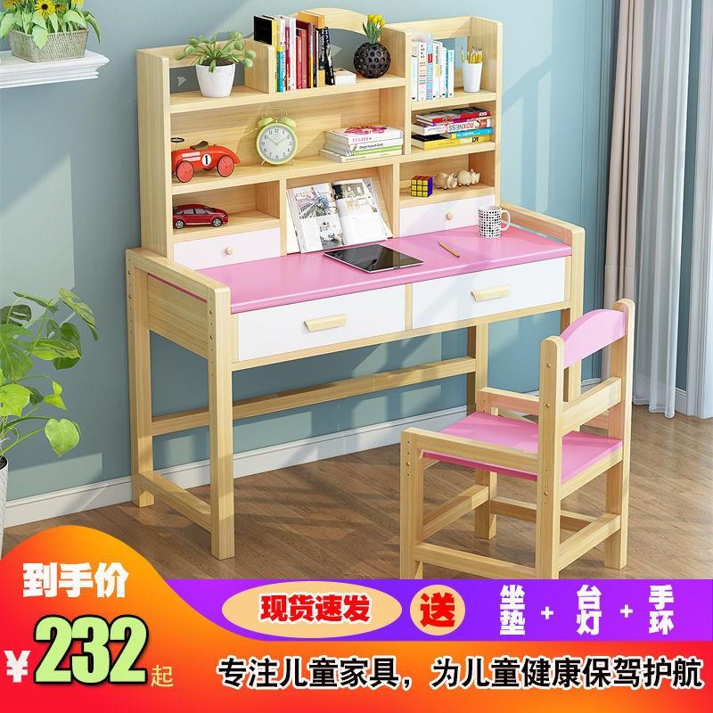 儿童学习桌小学生书桌可升降实木写字桌椅套装柜门简约作业桌课桌