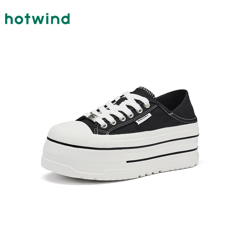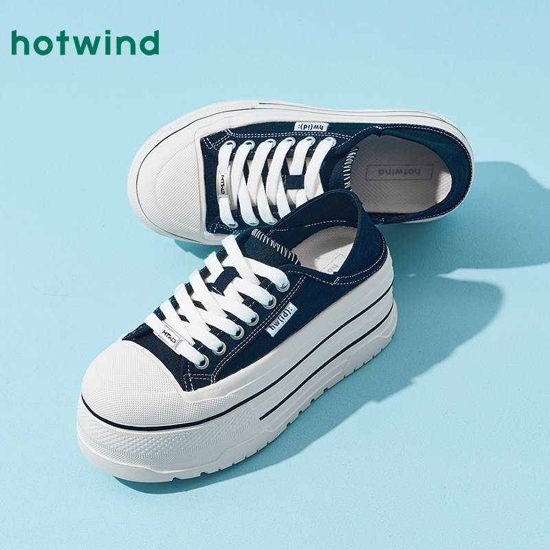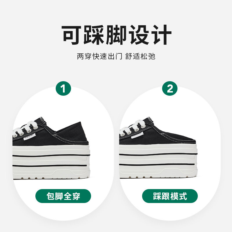 热风厚底帆布鞋女2025年秋季新款小个子增高两穿休闲板鞋百搭女鞋