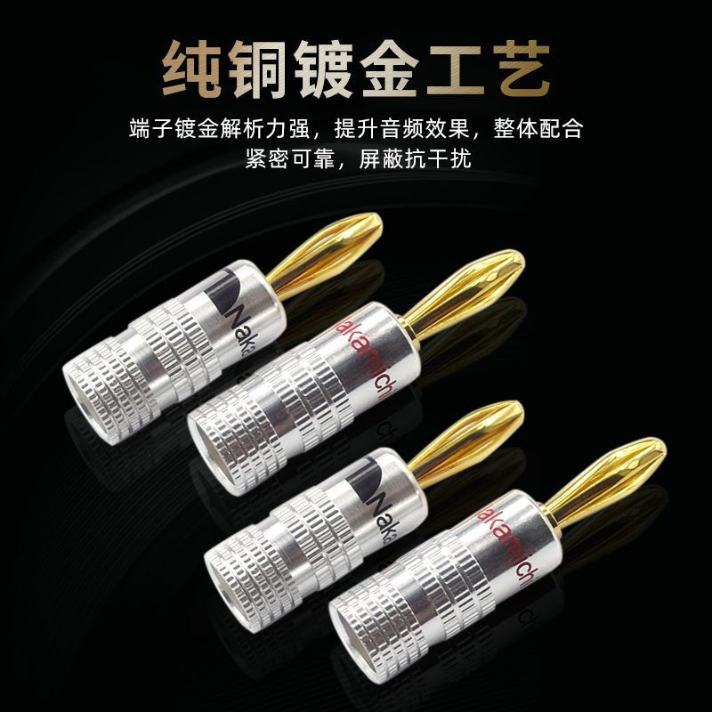 纯铜镀金香蕉插头免焊音响功放机接线柱喇叭音箱线香蕉插4mm铝壳