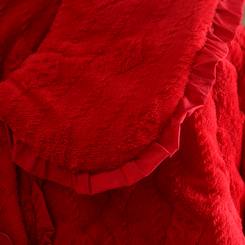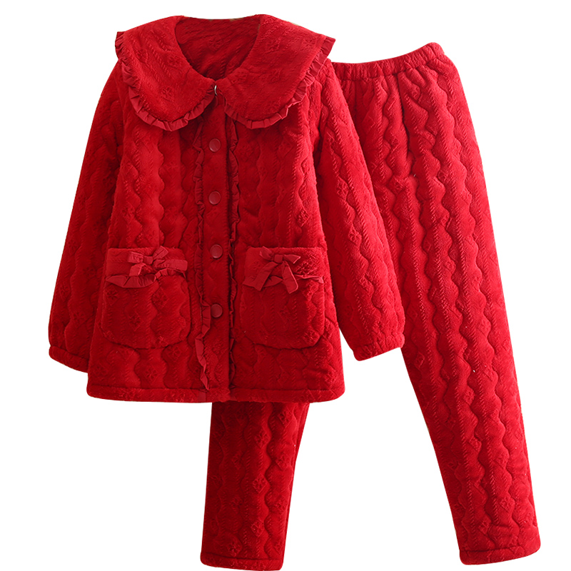 个性牛奶绒夹棉睡衣女冬三层加厚珊瑚绒可爱修身版法兰绒家居服套