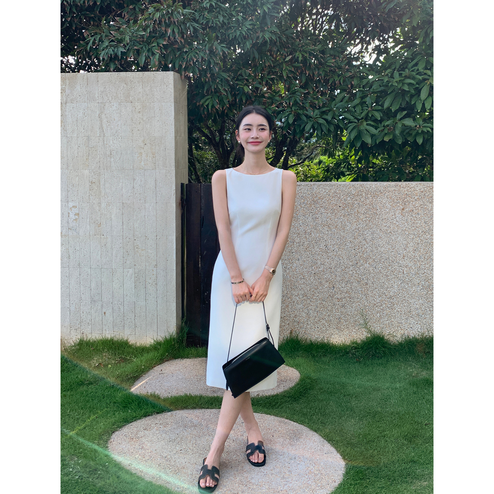 Maven Lin 高智系列|日常通勤醋酸背心连衣裙设计感后开叉包臀裙
