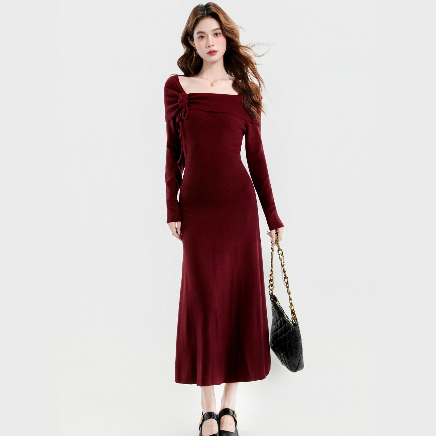 轻奢高级感长款针织连衣裙
