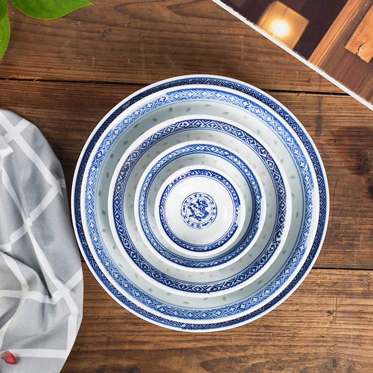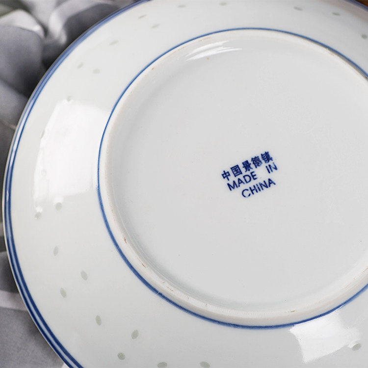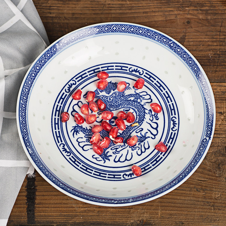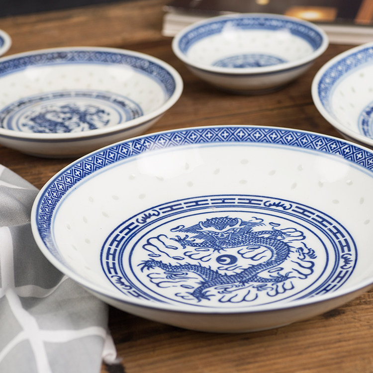 景德镇老式青花玲珑盘怀旧龙盘家用饭馆可定制菜盘果盘微波炉适用
