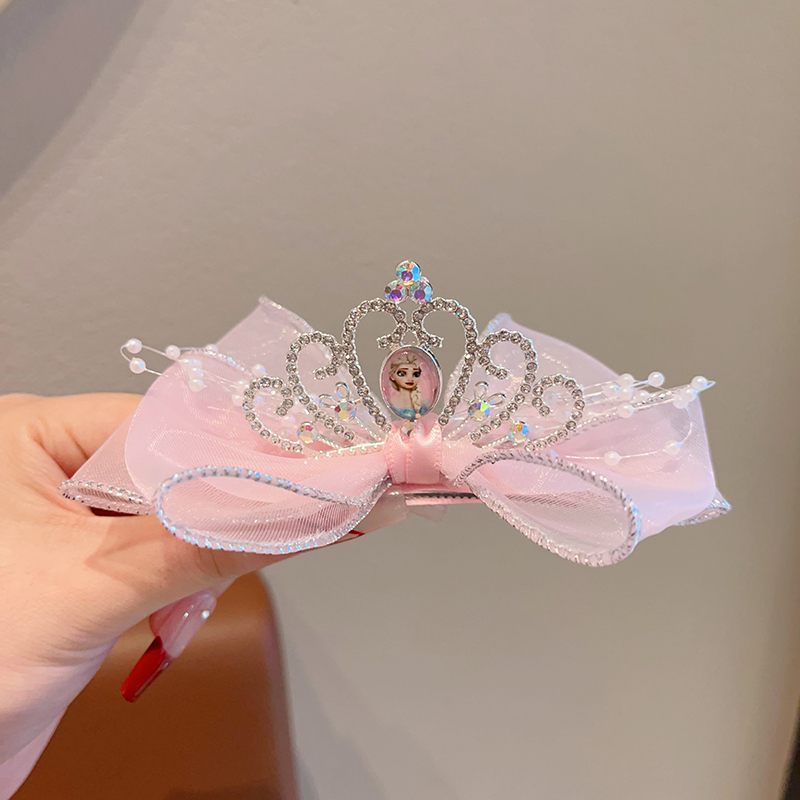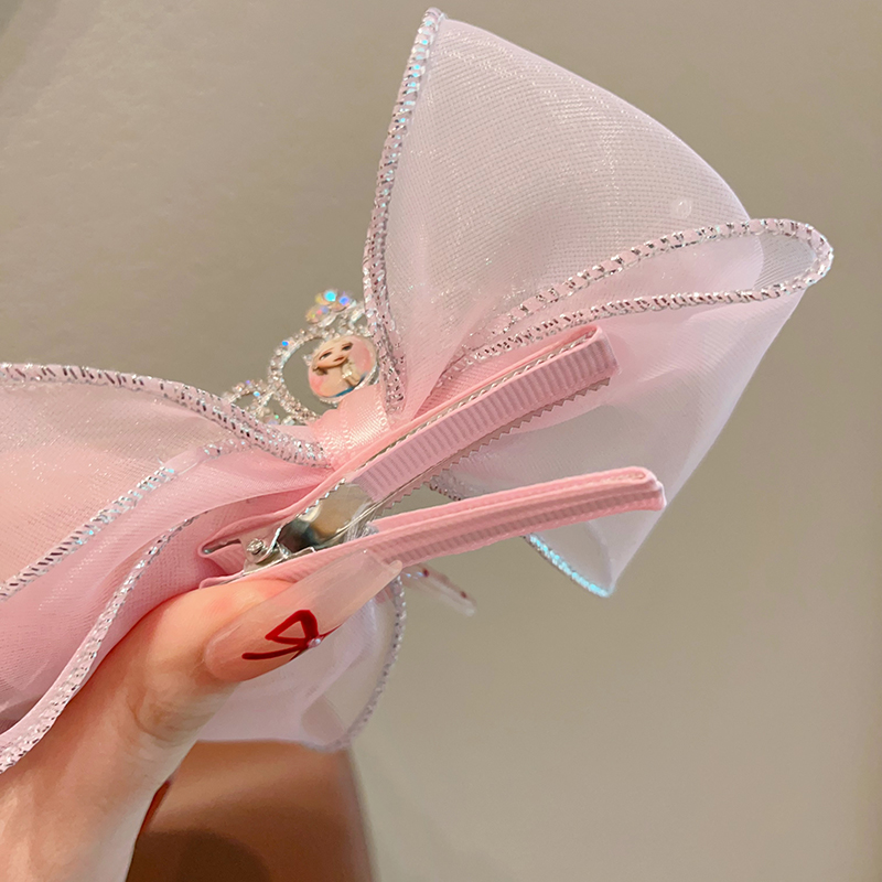 皇冠头饰儿童蝴蝶结发夹小公主发卡生日拍照纱纱顶夹女童发饰