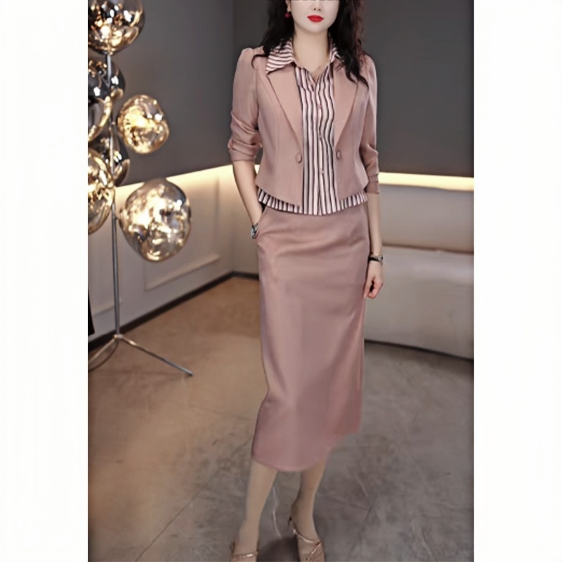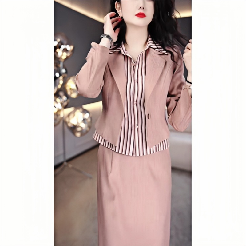 时尚百搭假两件上衣半身裙套装