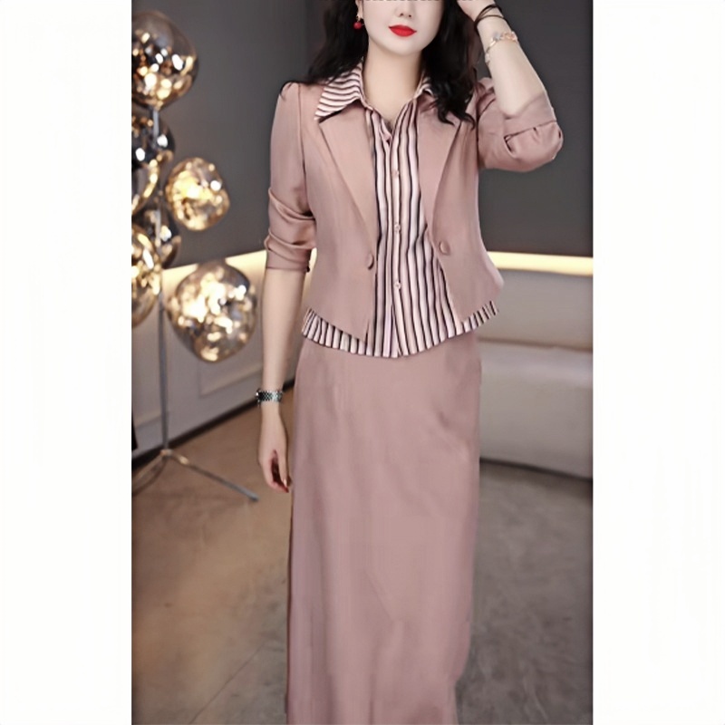 2025春季新款时尚百搭假两件上衣半身裙套装女大码气质显瘦两件套