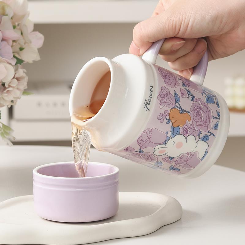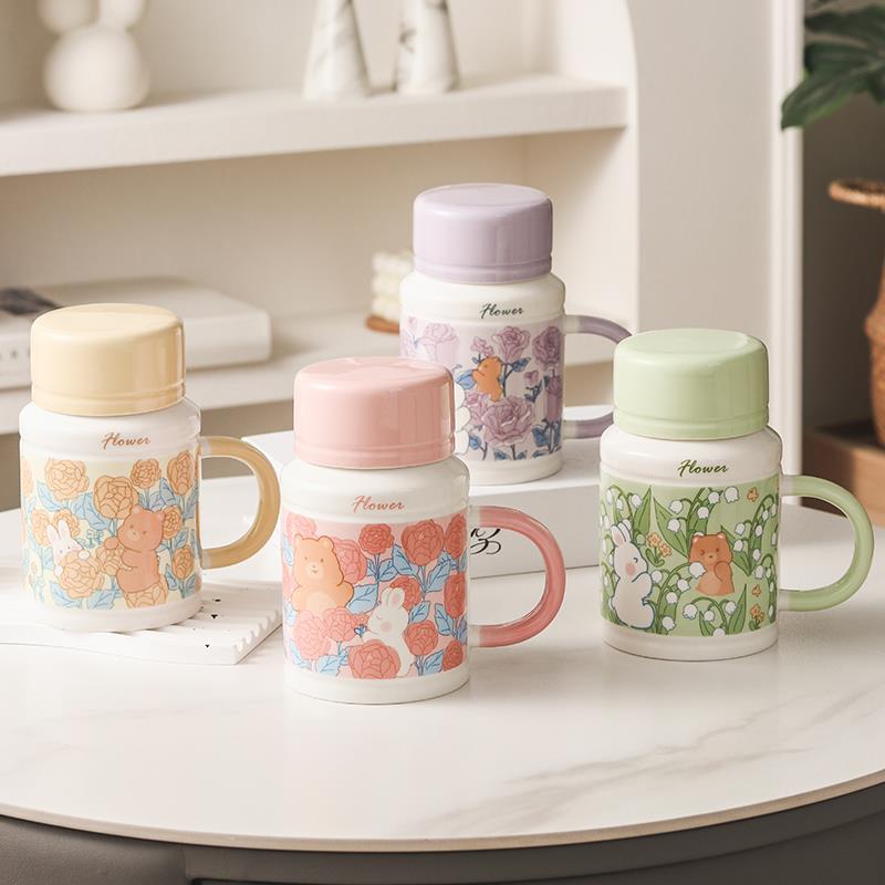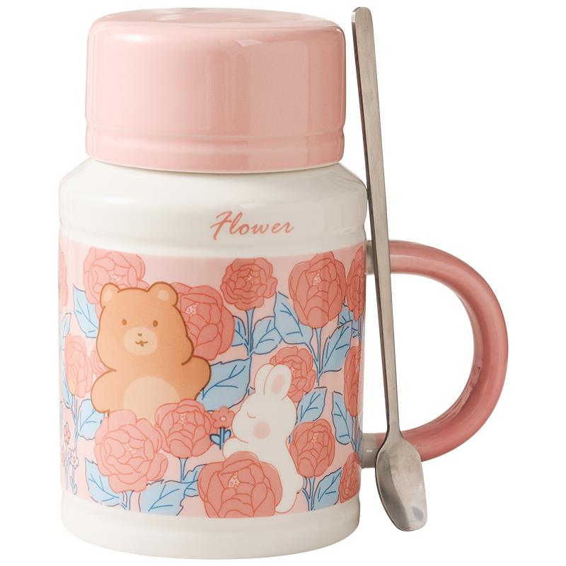 高颜值陶瓷杯带盖勺可爱女生水壶大容量马克杯子办公室咖啡早餐杯