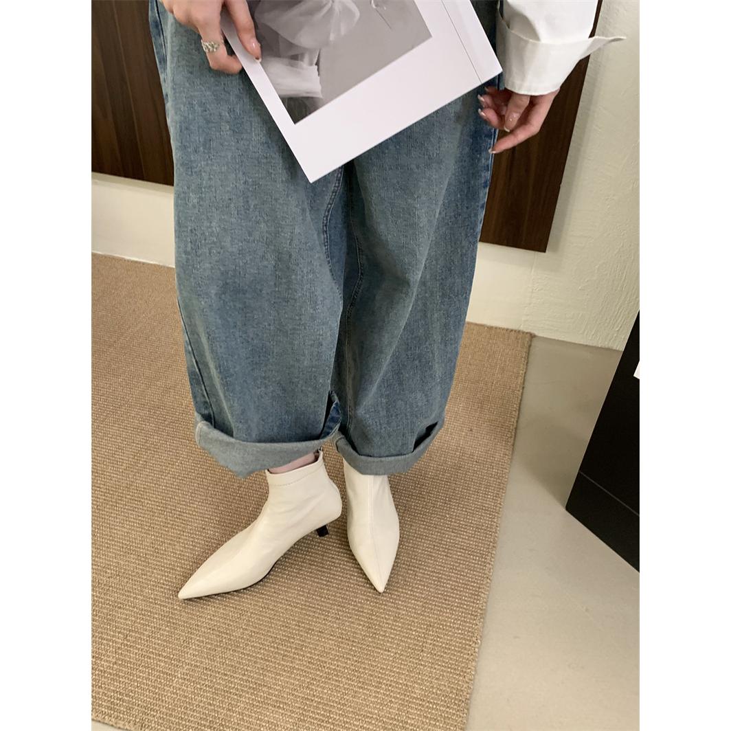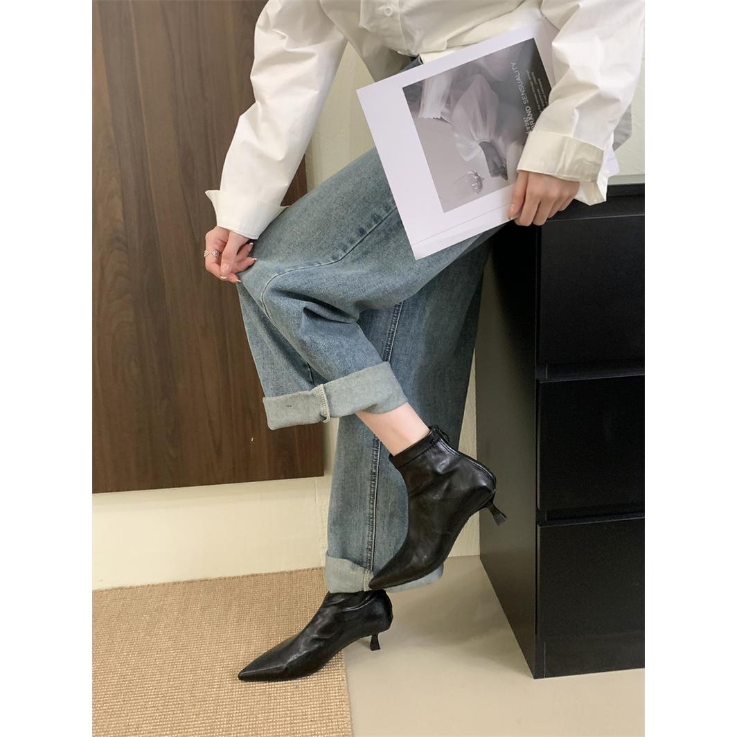2025秋冬尖头细跟中跟显瘦时尚网红女短靴低跟瘦瘦靴子单靴