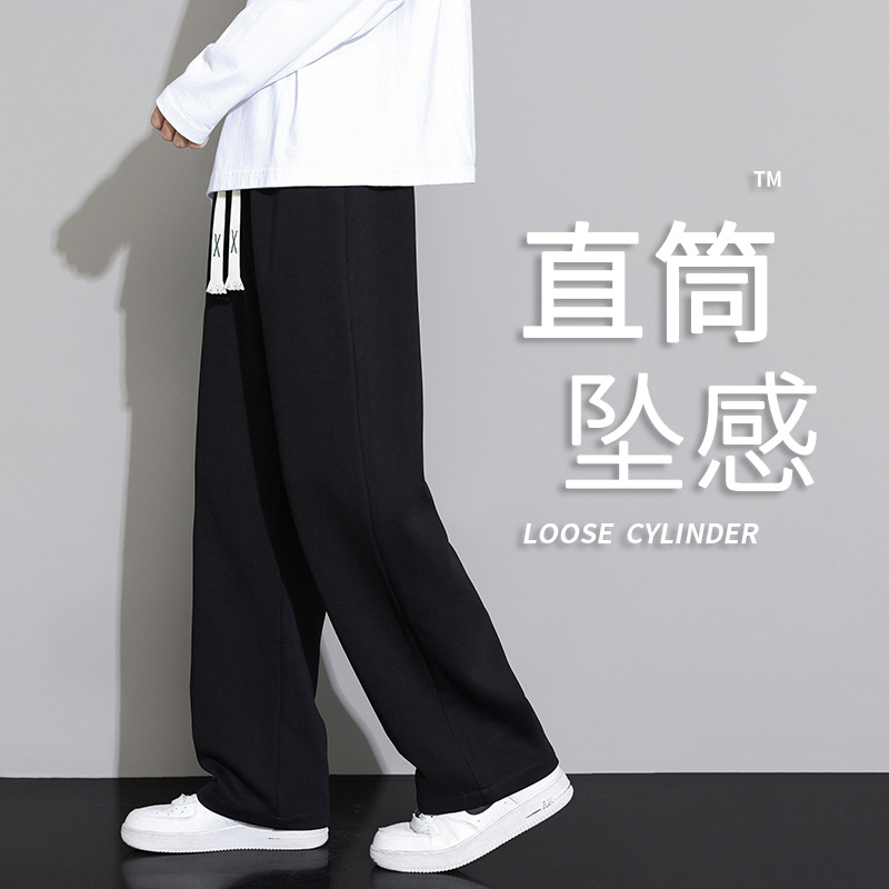 裤子男款春秋宽松阔腿男裤直筒运动秋季黑色卫裤男士工装休闲长裤