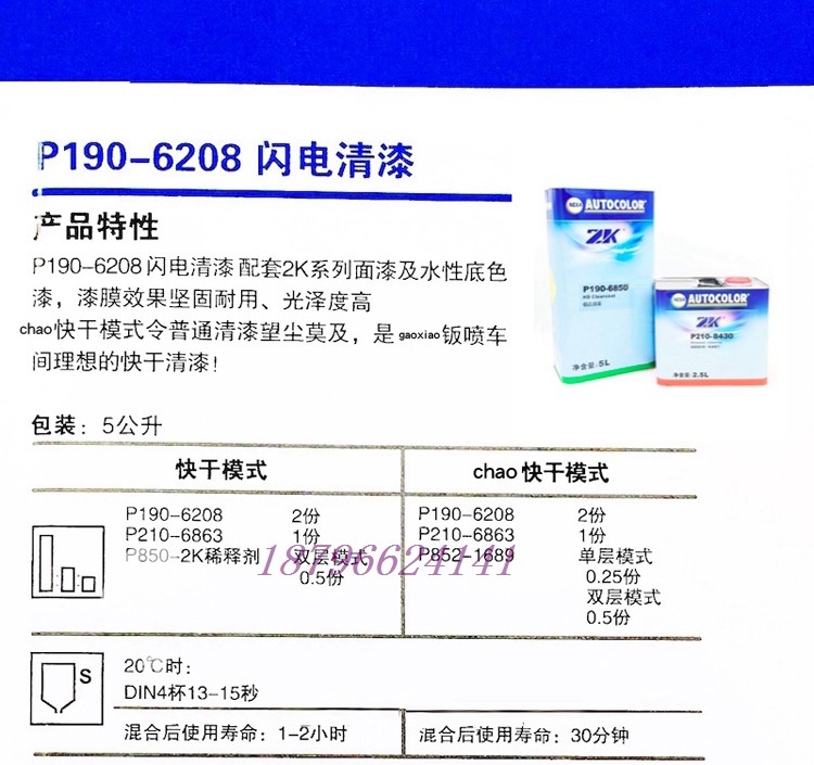 PPG清漆亮油P210-6863固化剂闪电清漆P190-6208抗划痕汽车高硬度