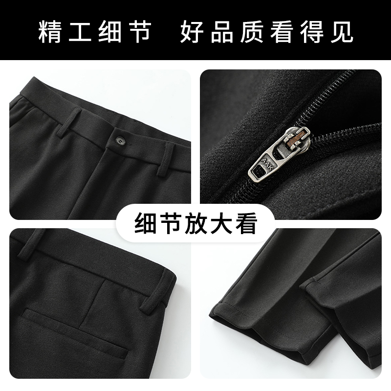 罗蒙毛呢裤子男秋冬韩版直筒修身加厚保暖休闲长裤男士痞帅西裤男