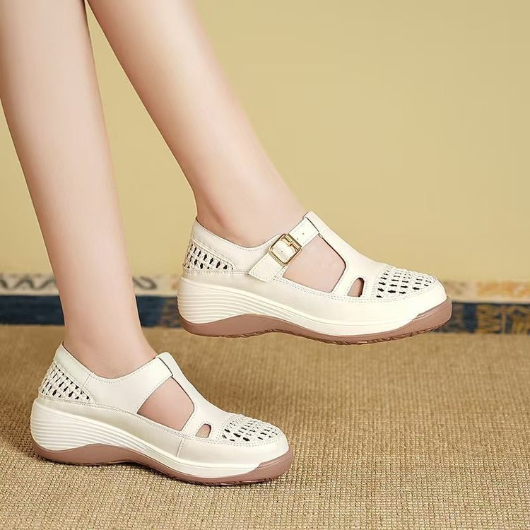 包头罗马凉鞋女款2025夏季新款厚底妈妈鞋中老年舒适不累脚