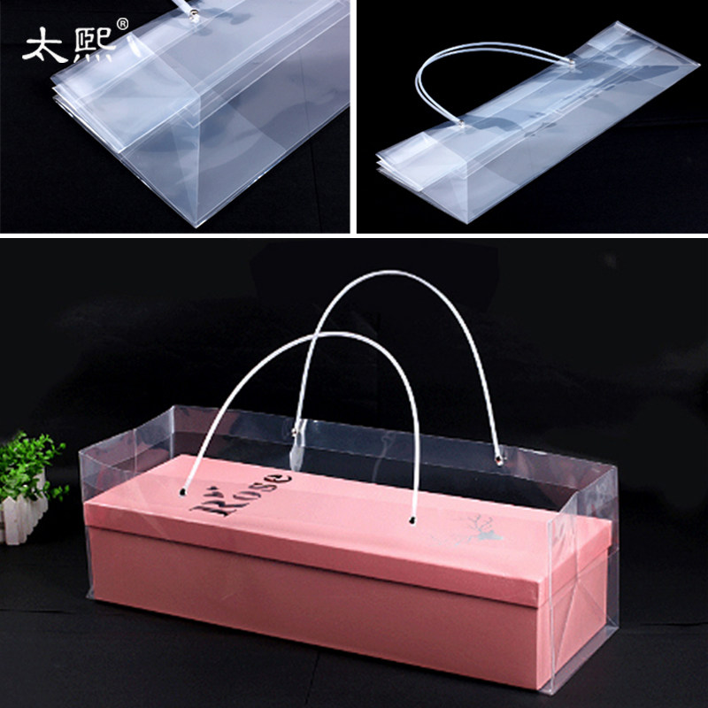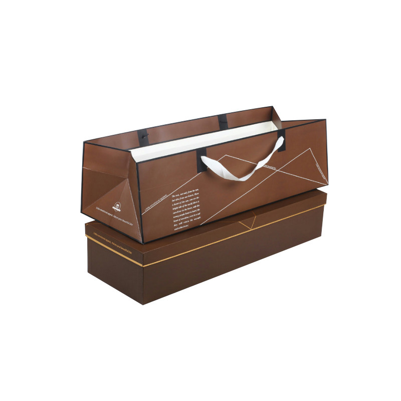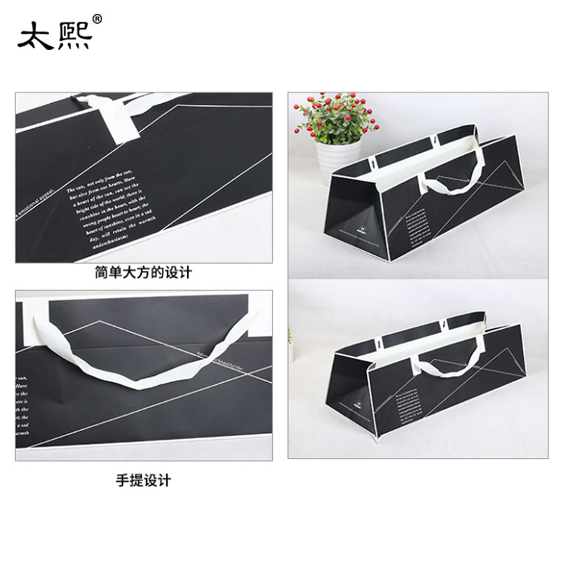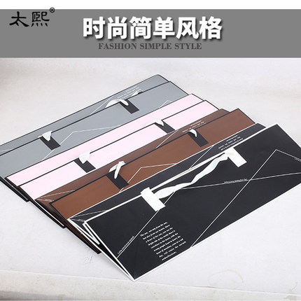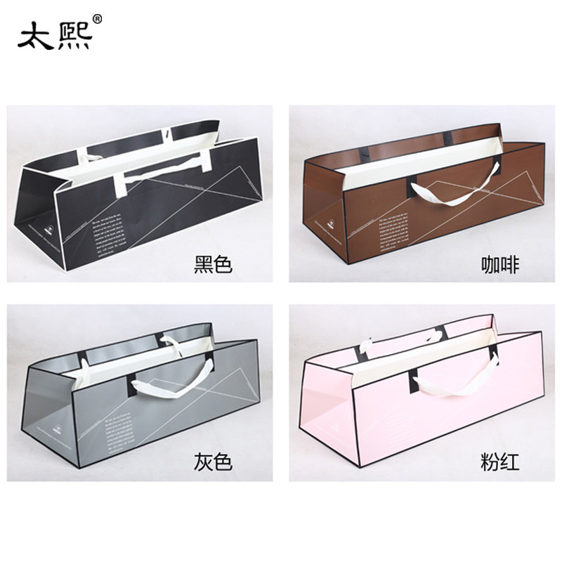 时尚韩版拼边鲜花礼盒手提袋简约线条长方形套二礼品盒袋枪炮礼盒