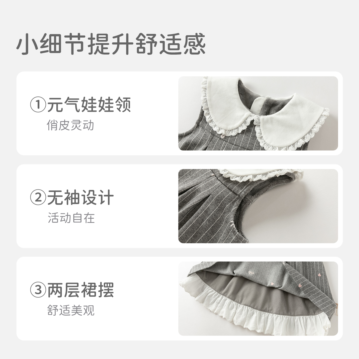 戴维贝拉儿童针织连衣裙2025秋冬新款女童宝宝加绒背心裙条纹裙子