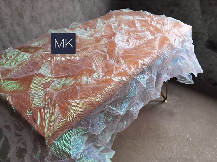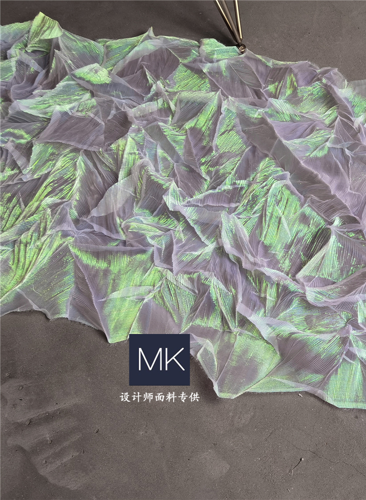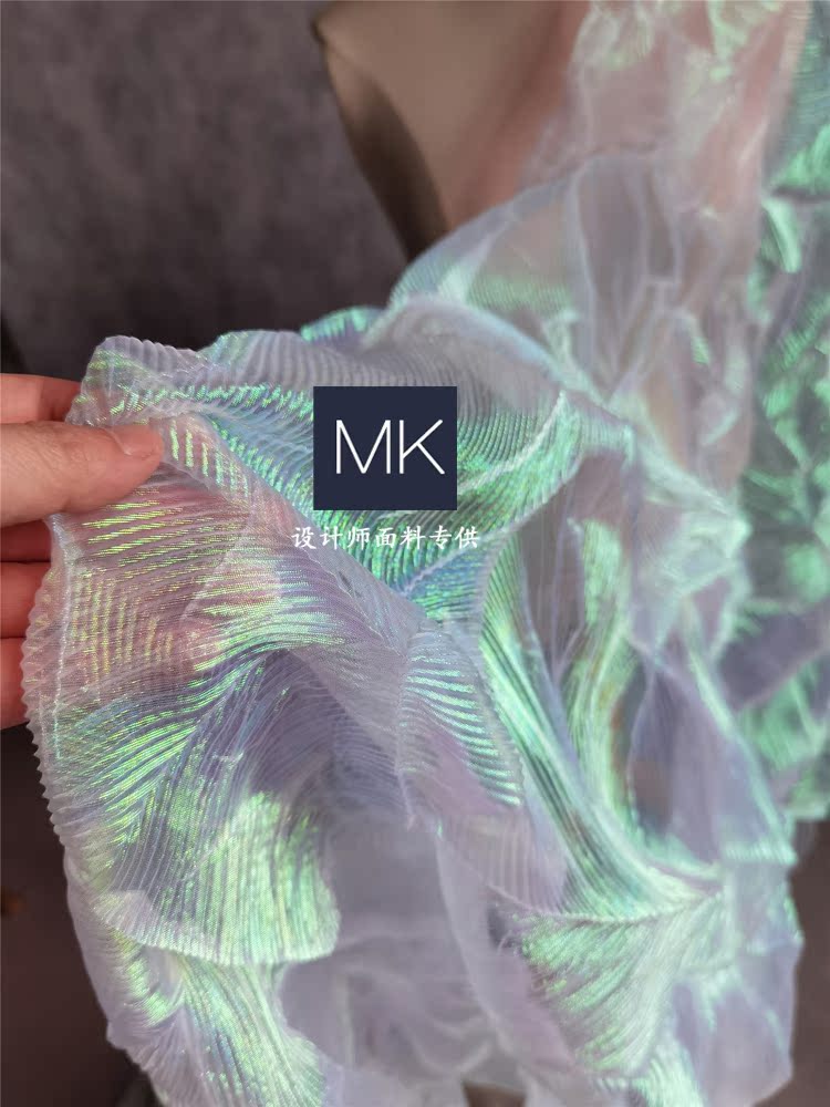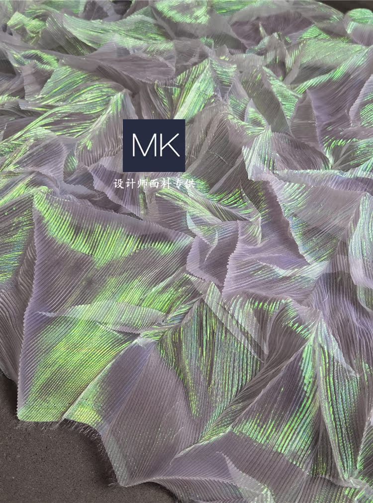 服装褶皱布 三宅一生白绿光肌理表面 diy镭射衣裙设计造型面料布