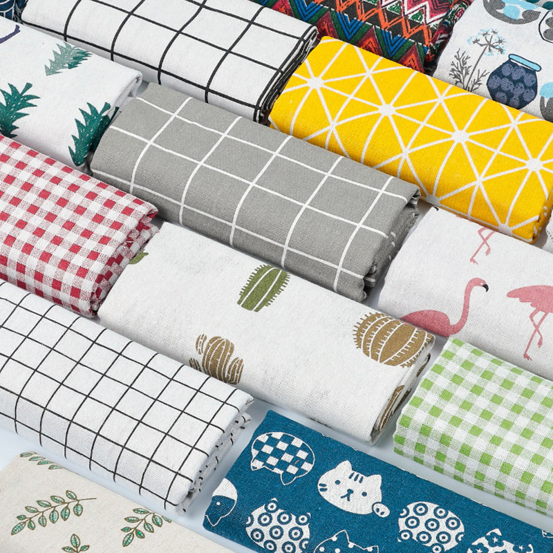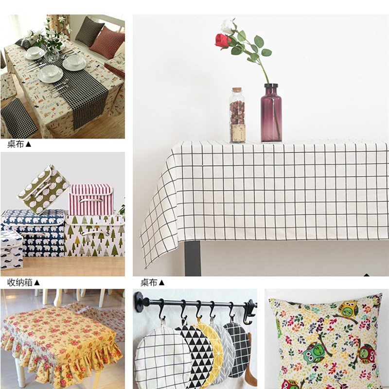 速发小雏菊棉麻布格子面料印花亚麻布田园碎花布料手工桌布窗帘
