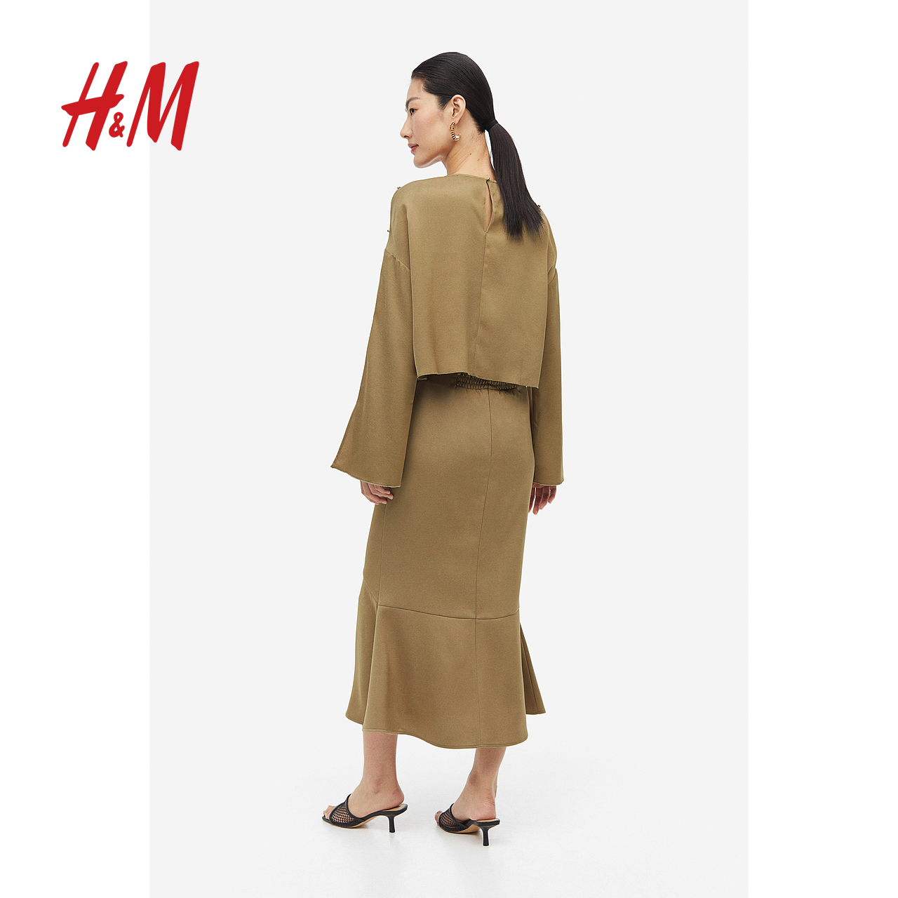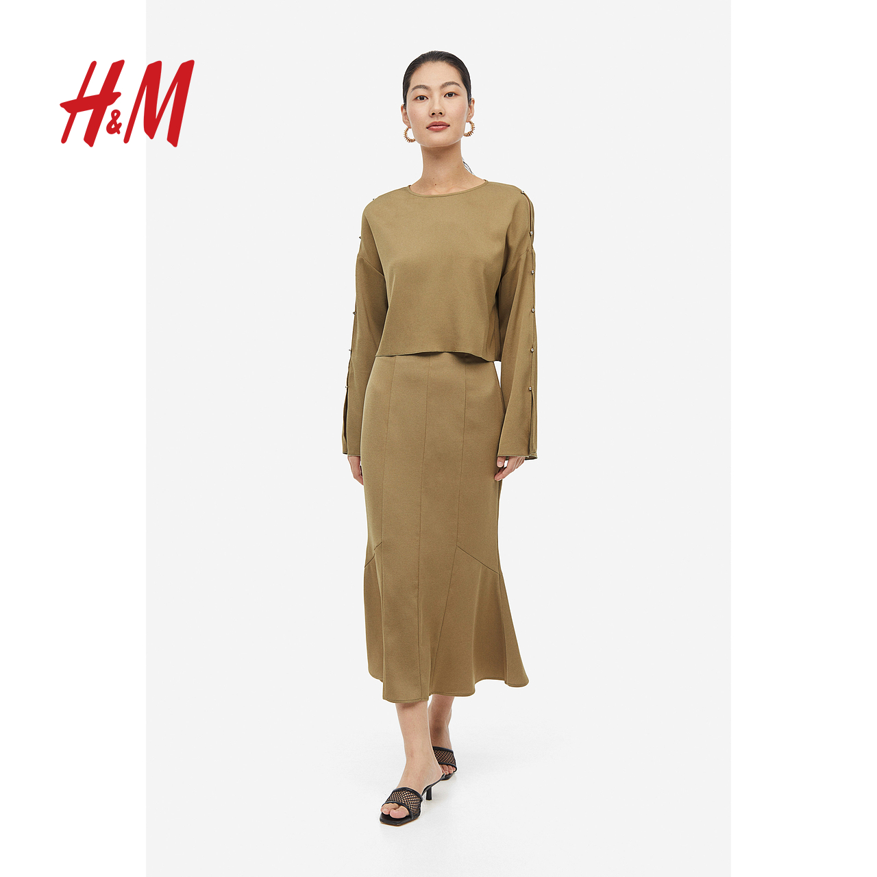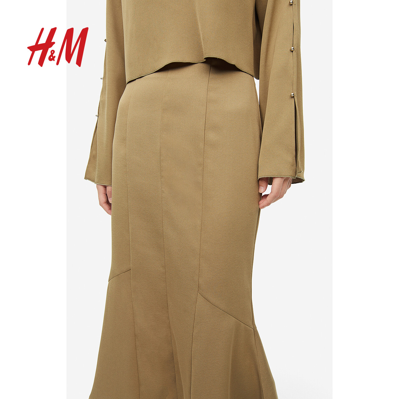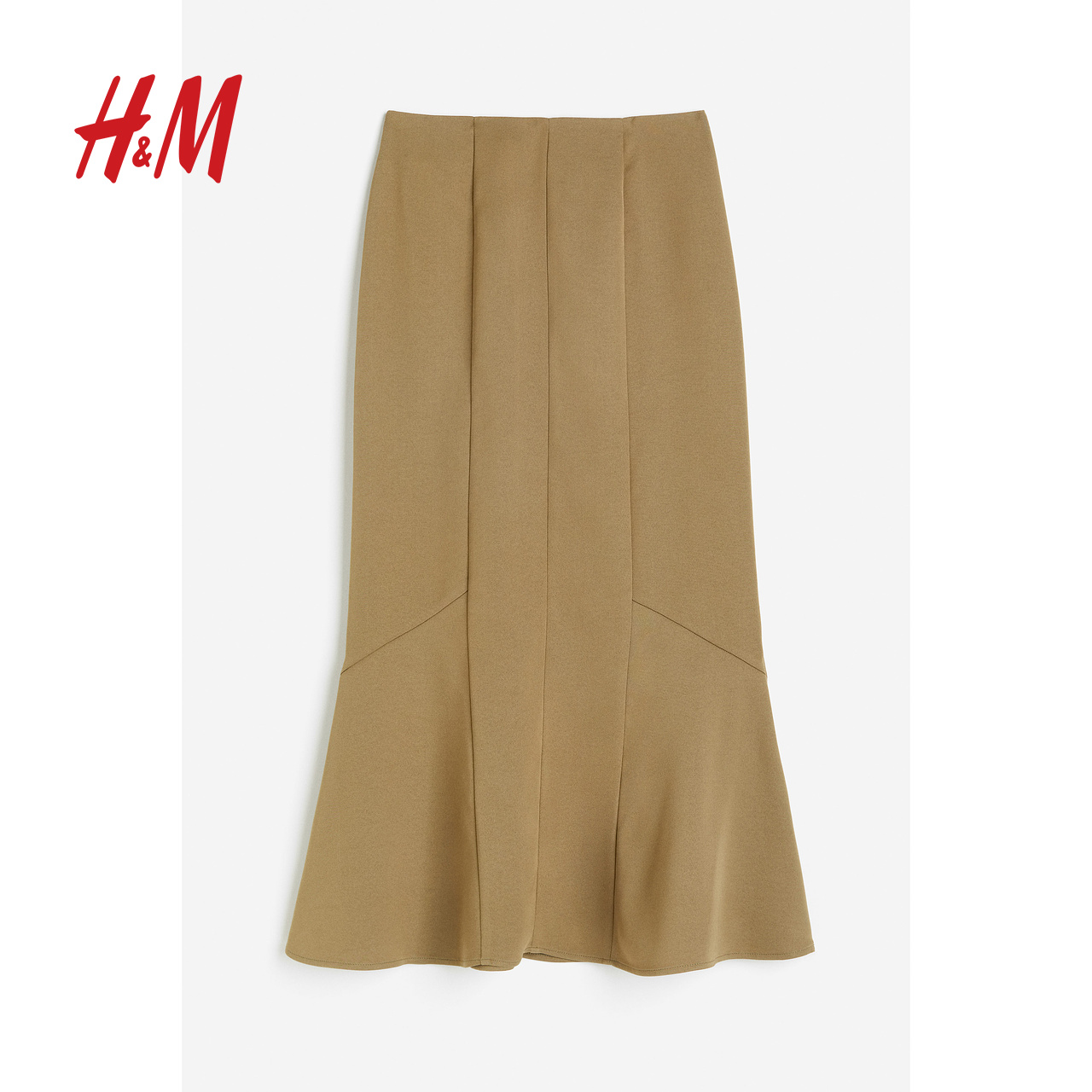 HM女装半身裙秋季舒适喇叭复古鱼尾裙美拉德穿搭1206417