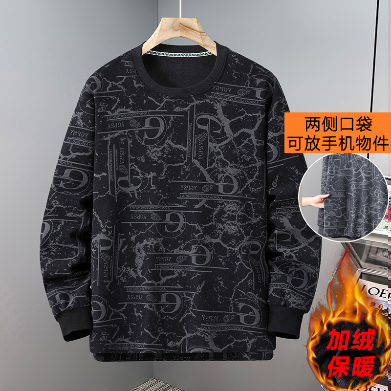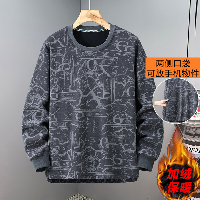 特大码印花加绒卫衣男士加厚圆领长袖t恤加肥加大胖子秋冬打底衫