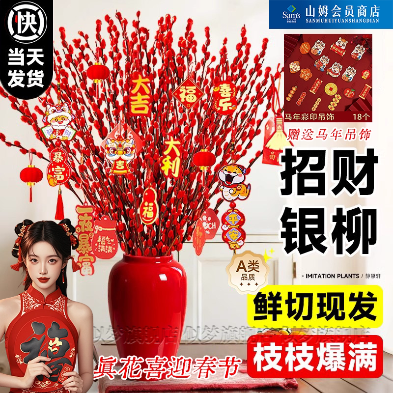 银柳真花鲜枝干花摆件室内客厅鲜花绿植新年年宵花卉植物过年春节