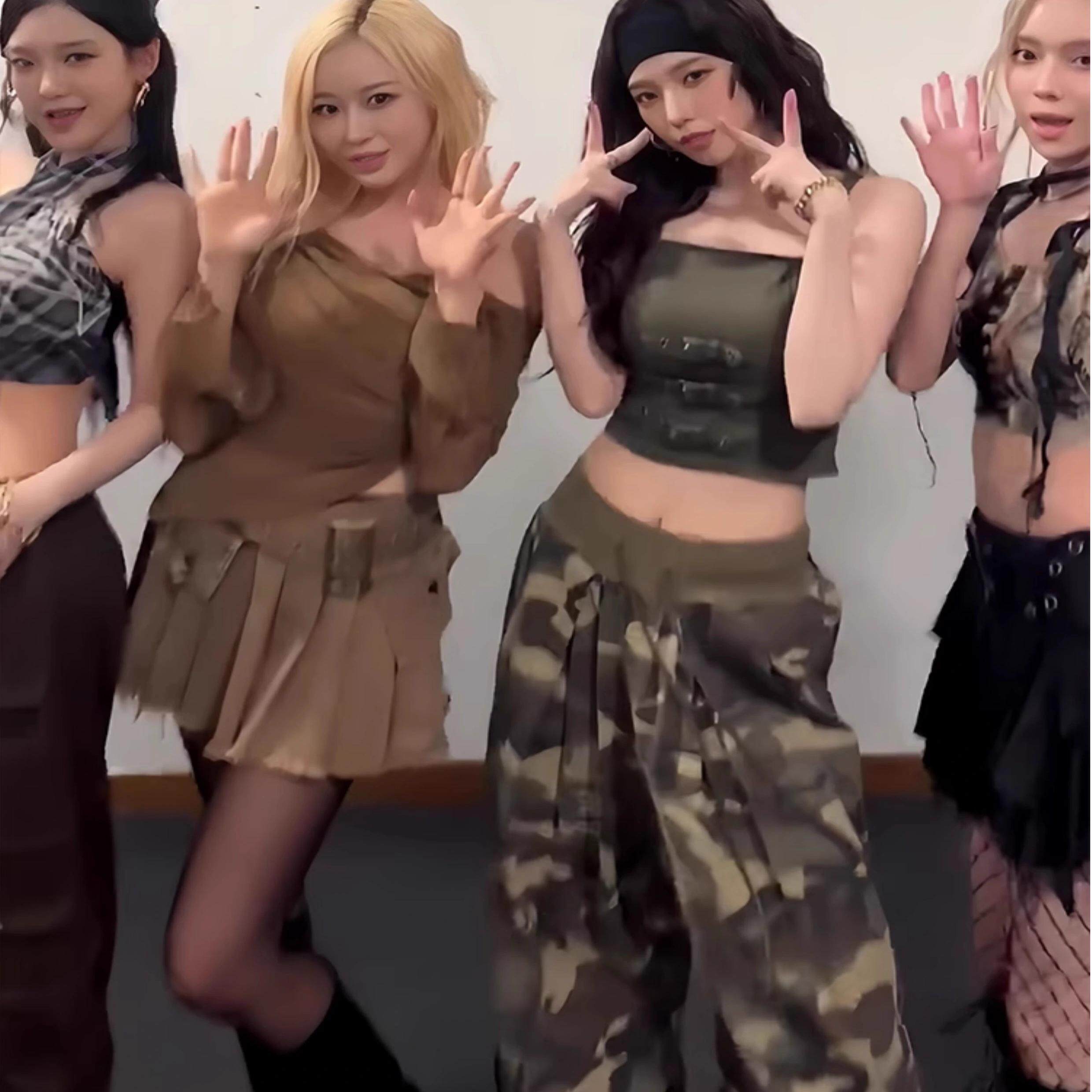 Aespa柳智敏同款复古美式工装韩国小众街头风宽松迷彩休闲裤女