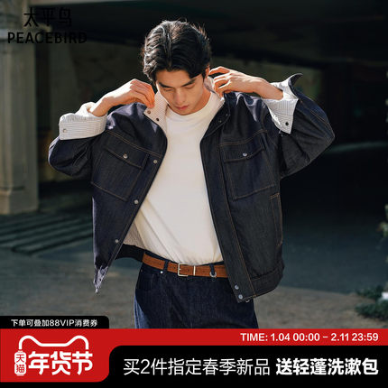 太平鸟男装 原牛色立领仿牛仔夹克工装潮流宽松茄克青年通勤外套