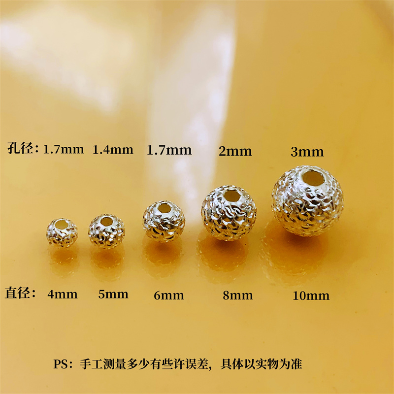 999足银碎冰冰手链散珠diy项链手串隔珠车花爆闪圆球珠子配件材料
