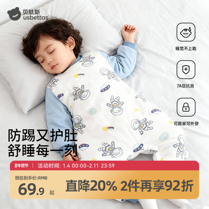 贝肽斯儿童睡衣秋冬加厚宝宝连体睡衣男女童纯棉婴儿睡袋冬季a类
