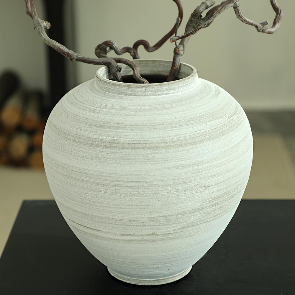 玄关现代简约陶瓷花瓶摆件白色月亮罐粗陶罐兰馨大肚瓷器瓶景德镇