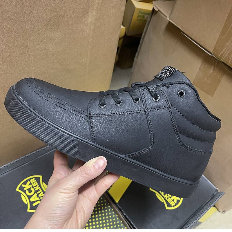 外贸原单男鞋2025春秋高帮全黑板鞋休闲防滑耐磨舒适运动旅游鞋皮