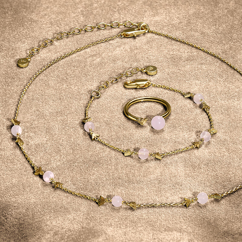阿玛尼女士粉色石英波状鹰标项链