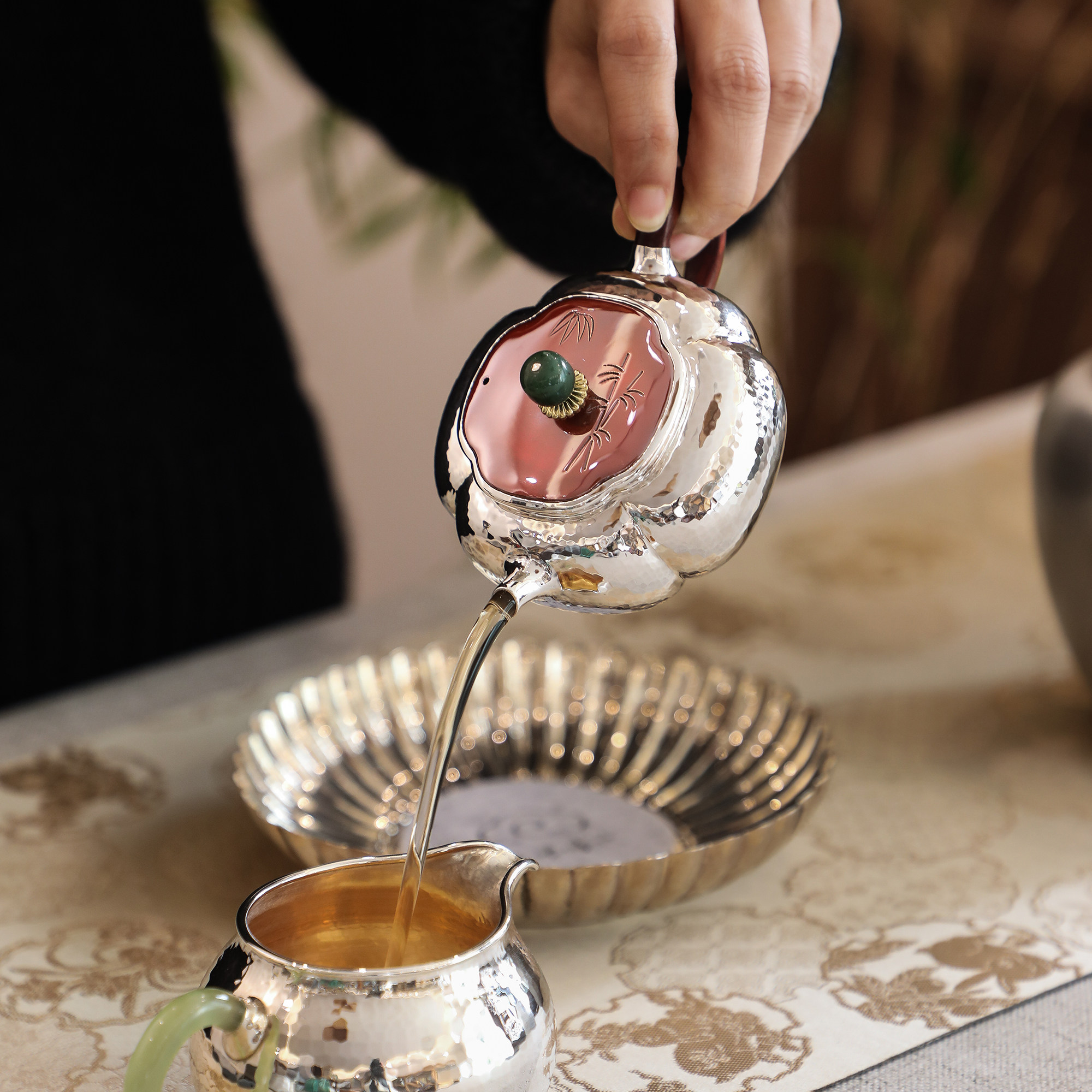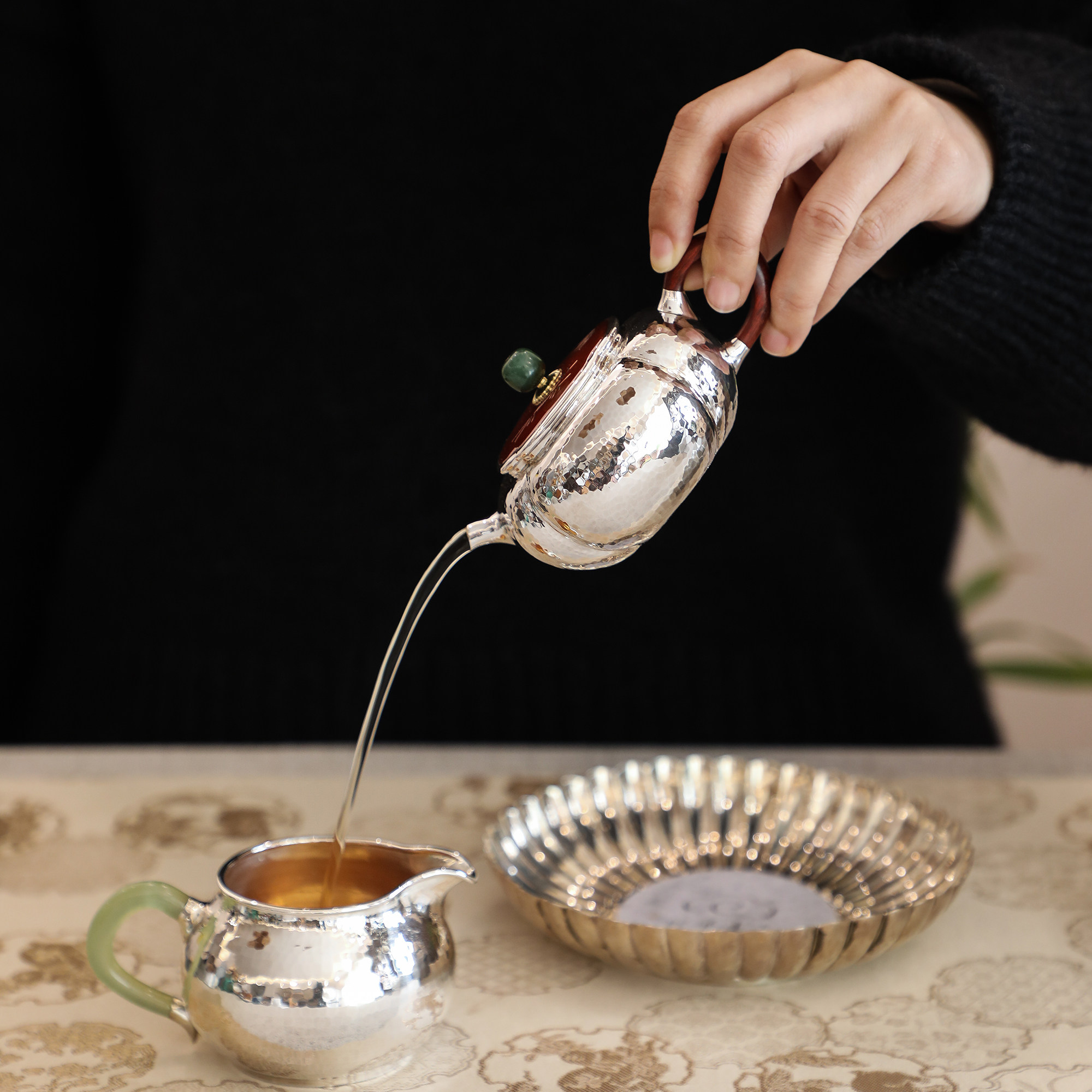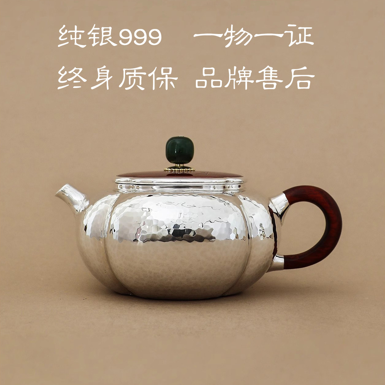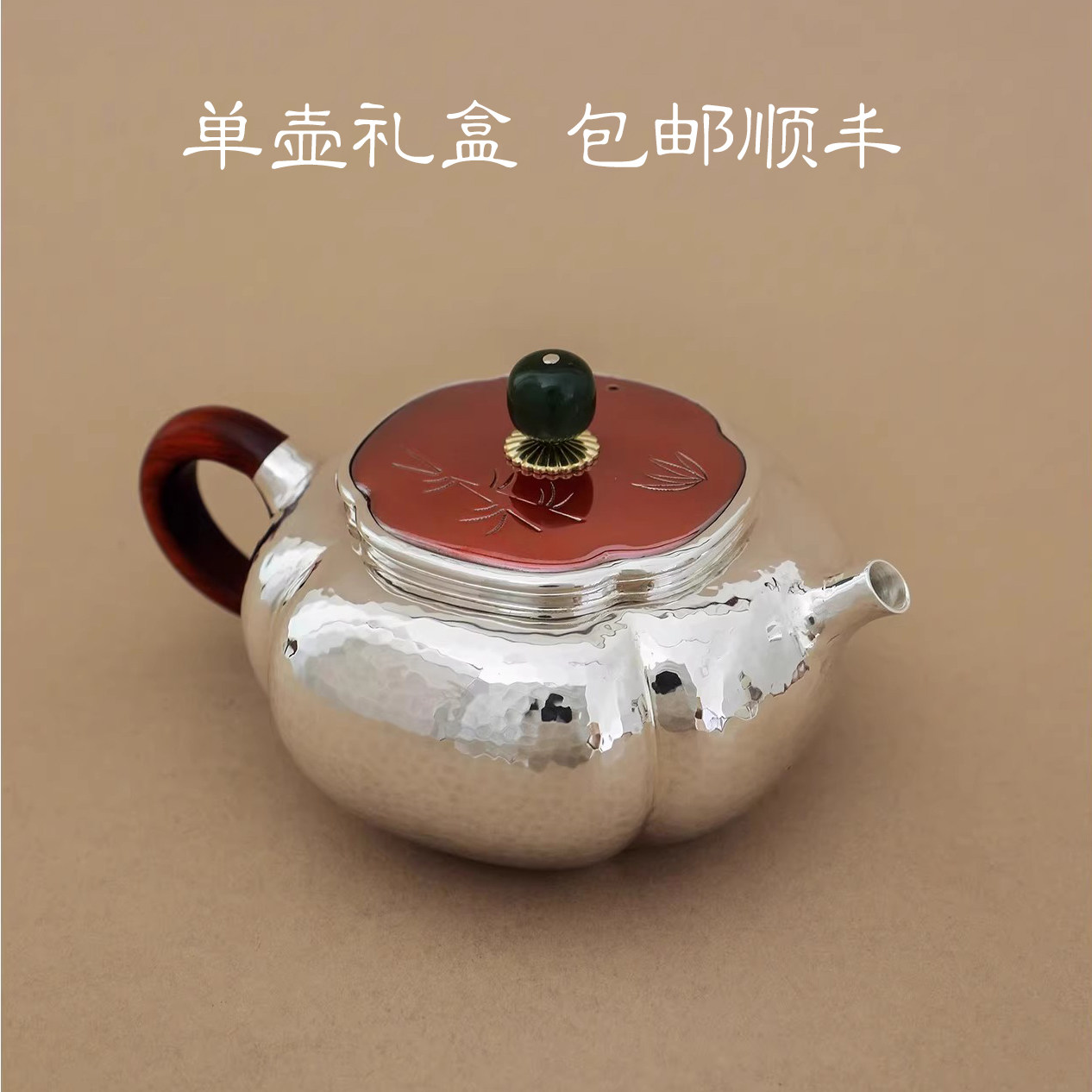 纯银时代四季海棠银壶纯银999纯手工雕刻中式泡茶壶精致送礼150ml