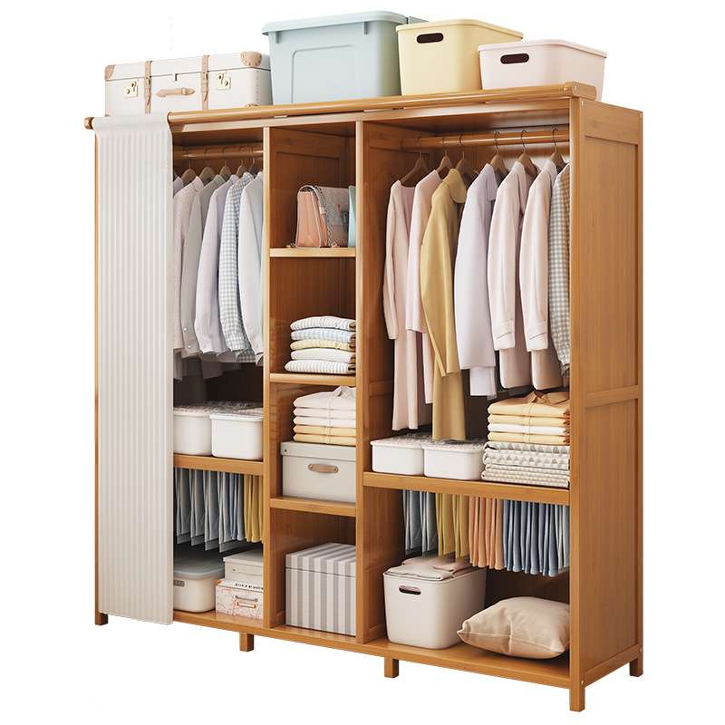 {活动价}衣柜家用卧室出租房用经济型实木简易组装拉帘布衣橱2024