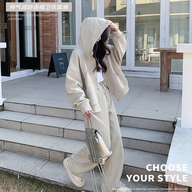 高级感休闲运动套装女春秋胖MM工装风卫衣卫裤两件套早秋两件套装