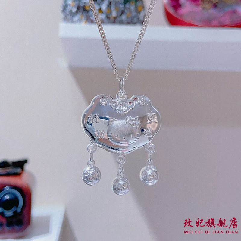 足银999平安喜乐长命福锁铃铛纯银项链男女宝宝儿童小孩子满月礼