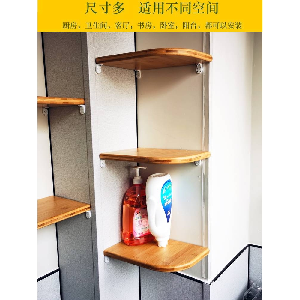 隔板转角三角置物架壁挂墙角厨房卫生间浴室拐角收纳架免打孔实木