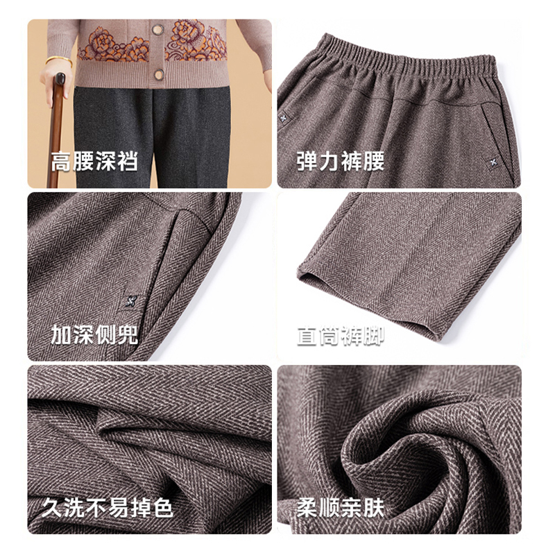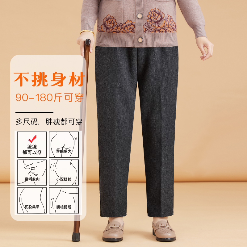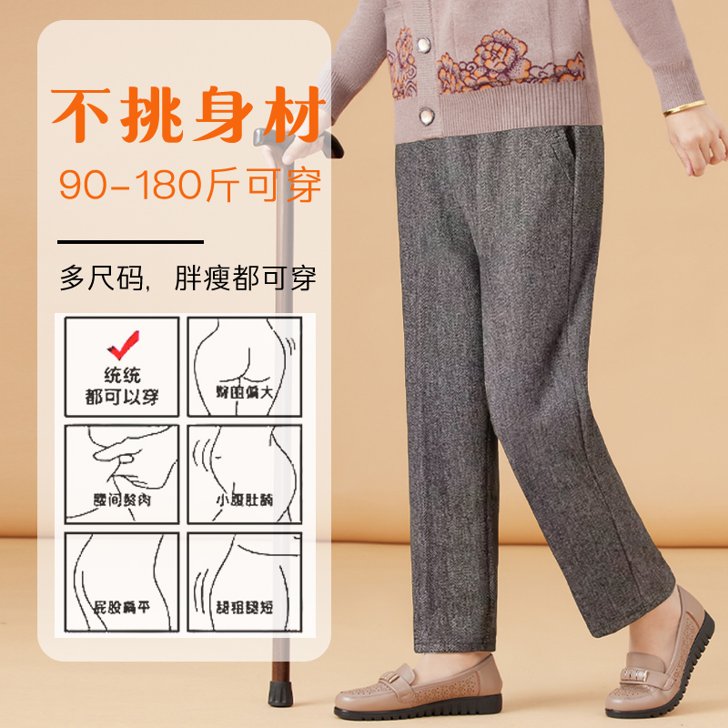 中老年女裤妈妈裤子春装新款宽松春秋老太太松紧腰直筒60岁奶奶裤