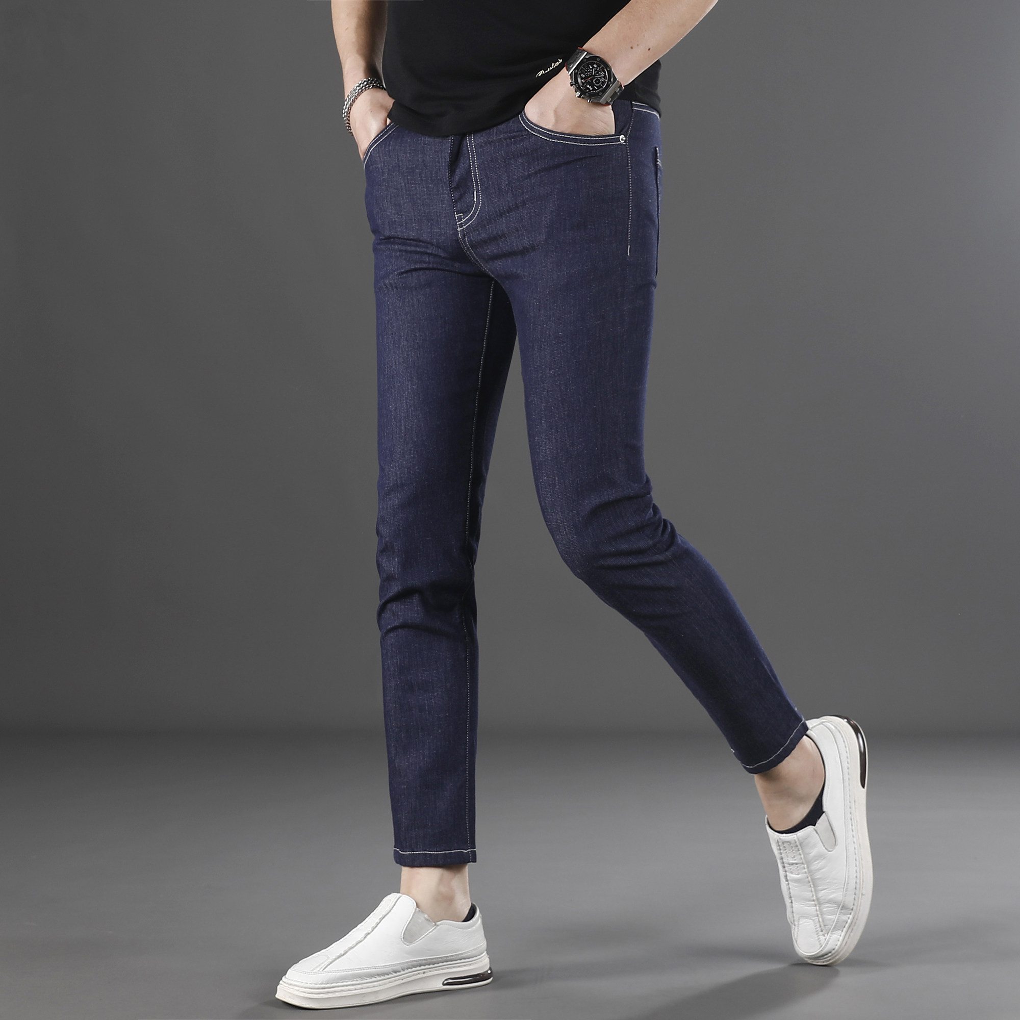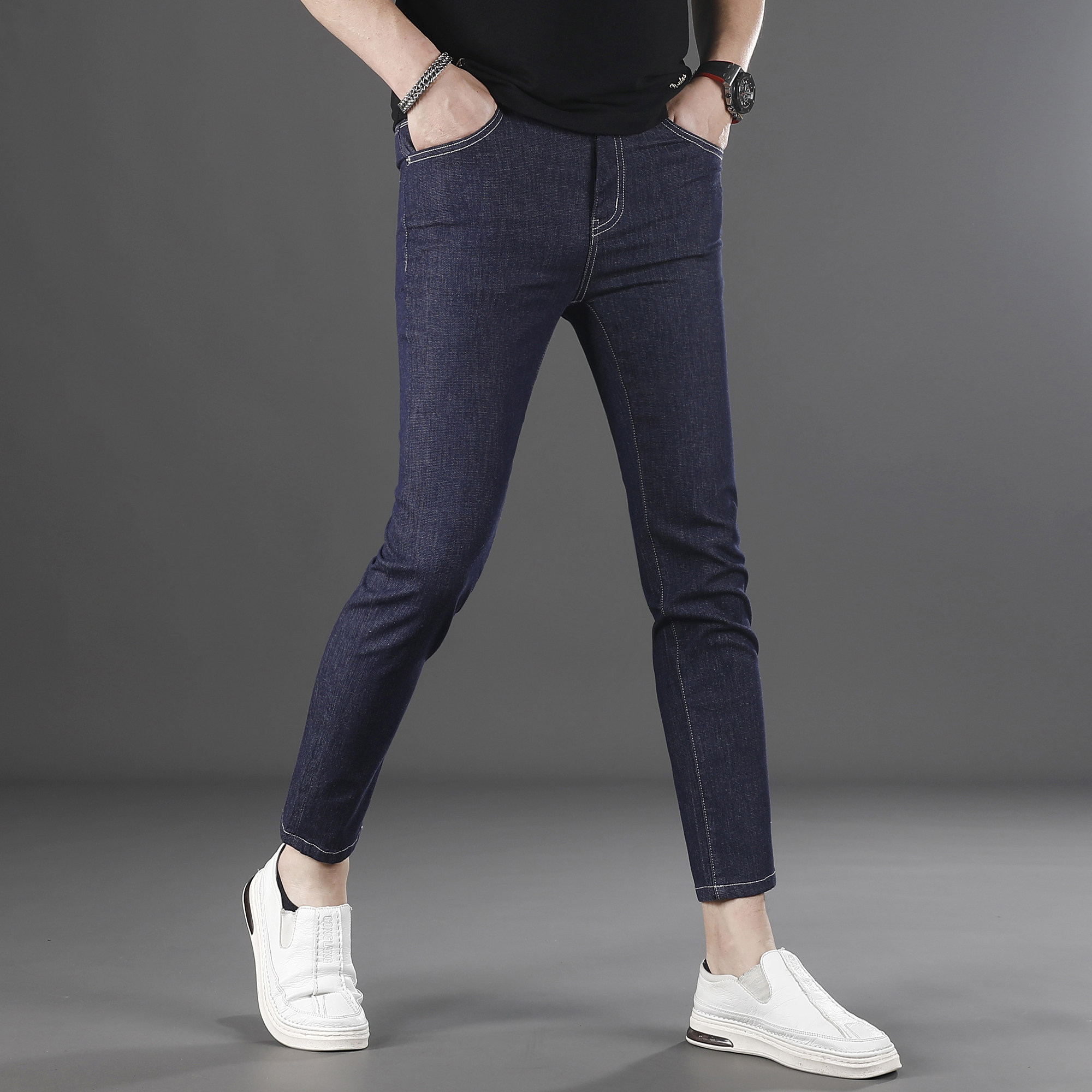 高端夏季九分牛仔裤男款修身小脚2025新款休闲弹力男生裤子9分薄