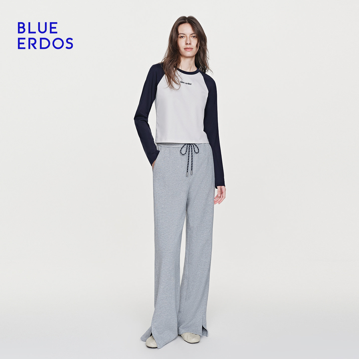 BLUE ERDOS26早春新品通勤百搭撞色连肩袖修身长袖T恤B2265F033