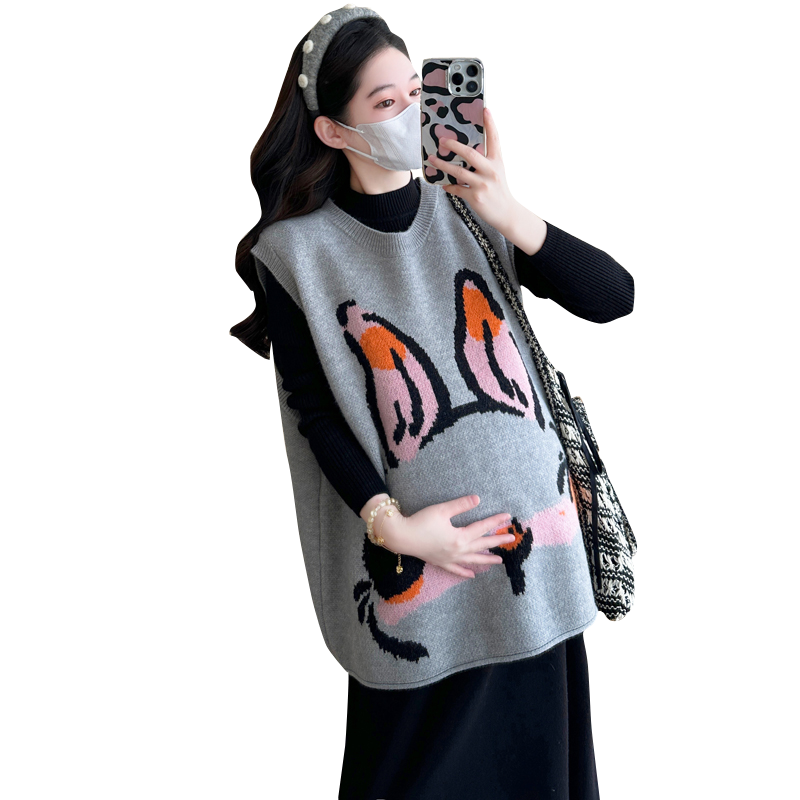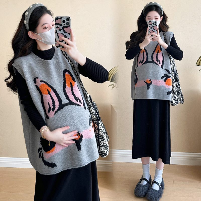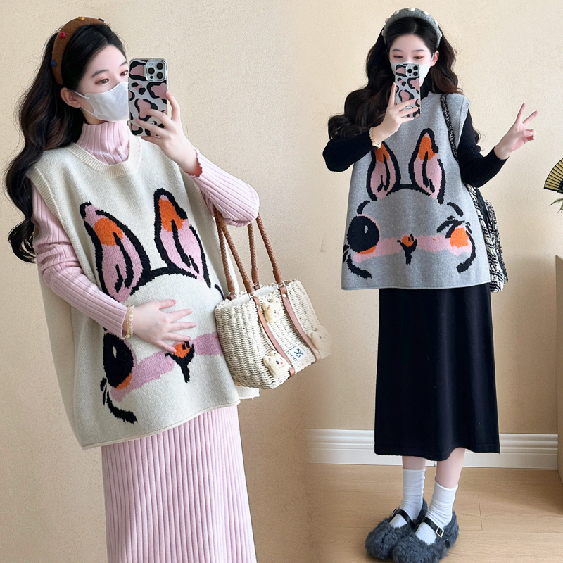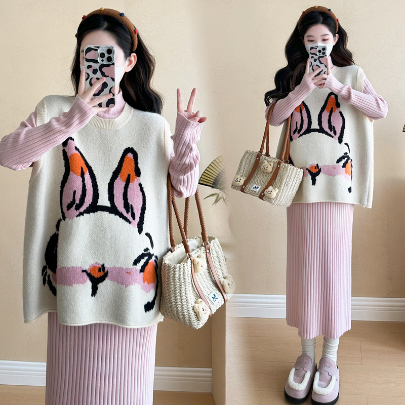 大码孕妇春秋马甲针织毛衣裙套装