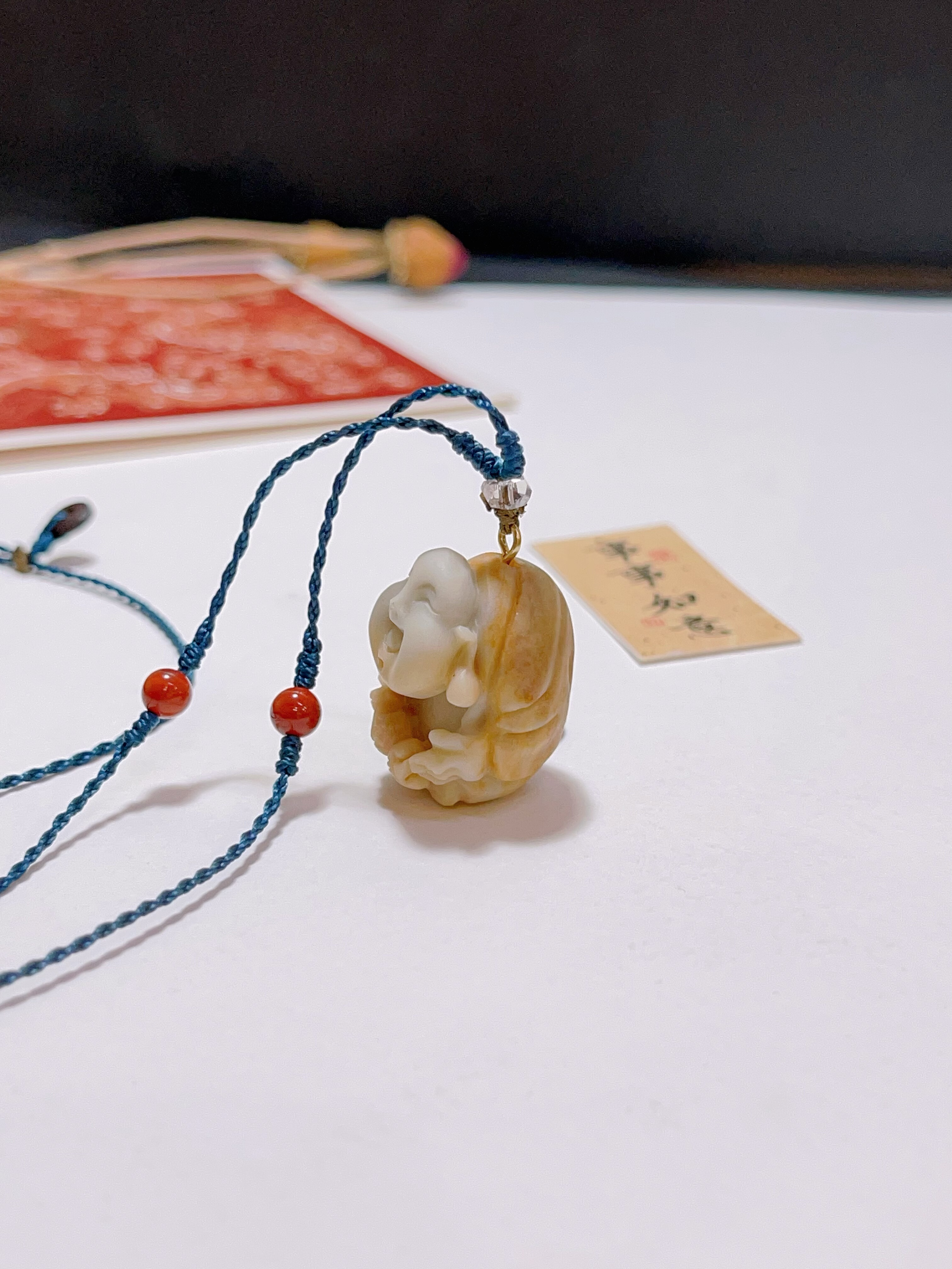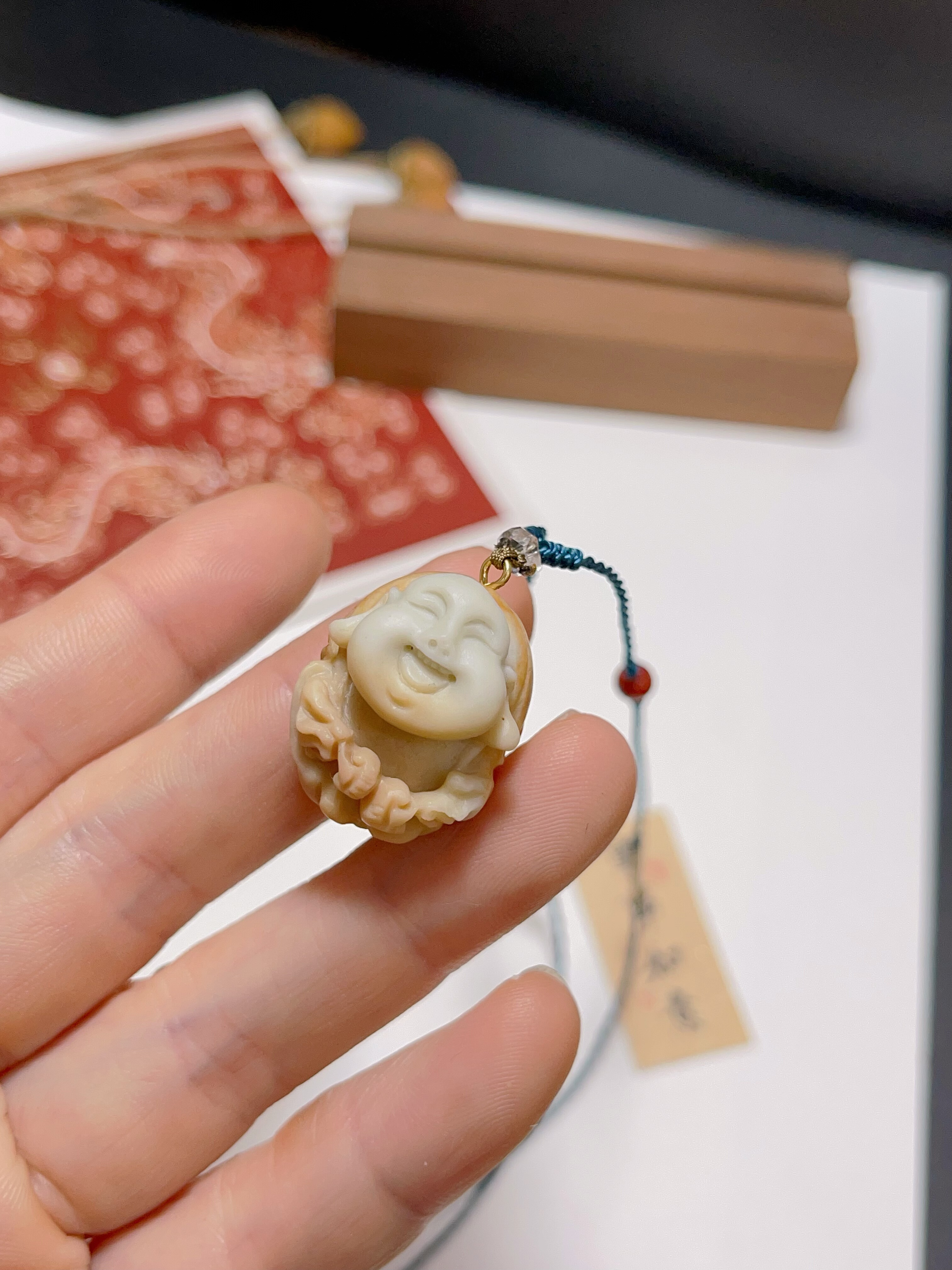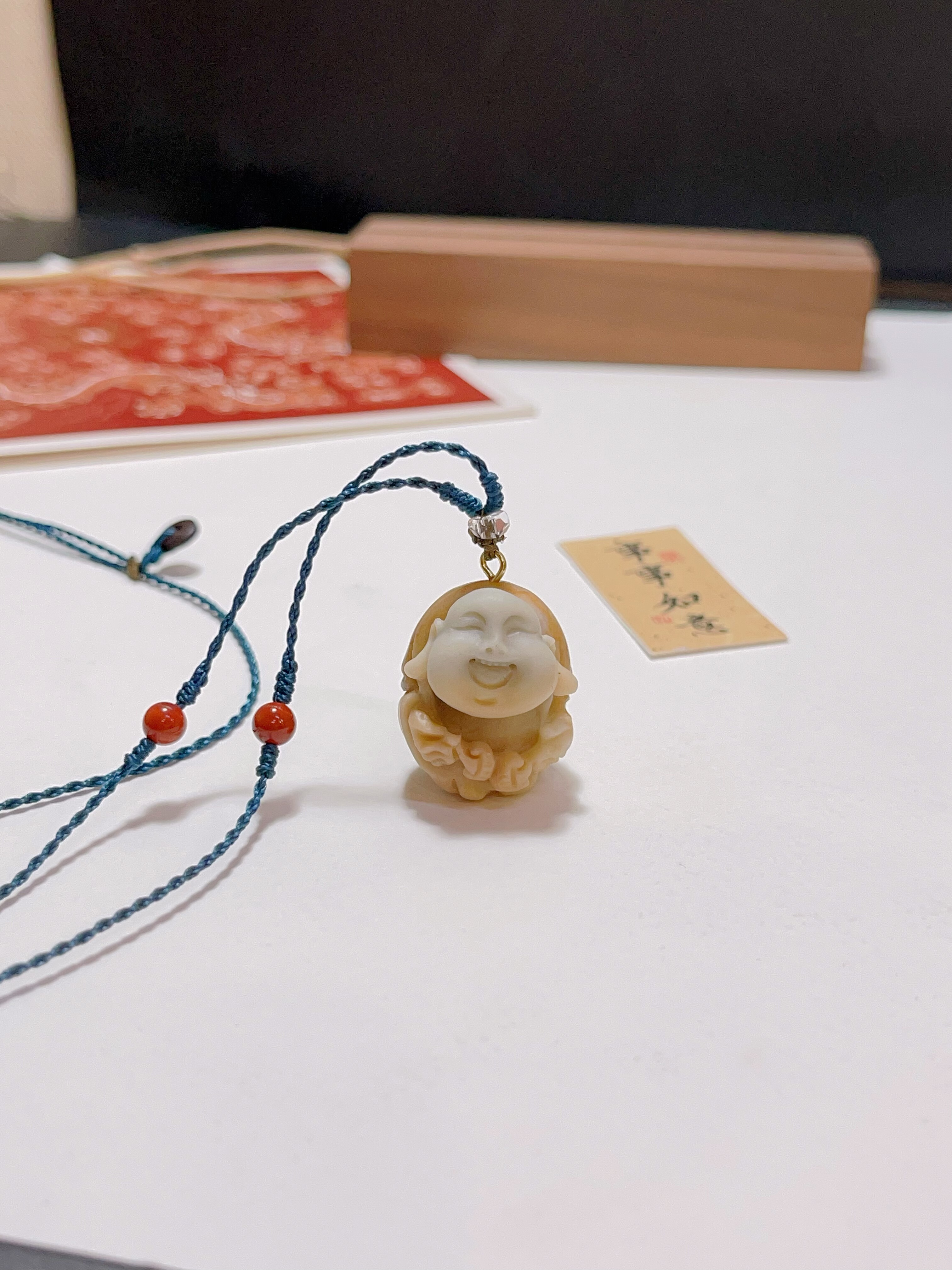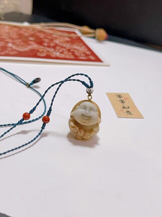 设计款笑脸弥勒佛吊坠 如意阿拉善玉弥勒佛吊坠项链