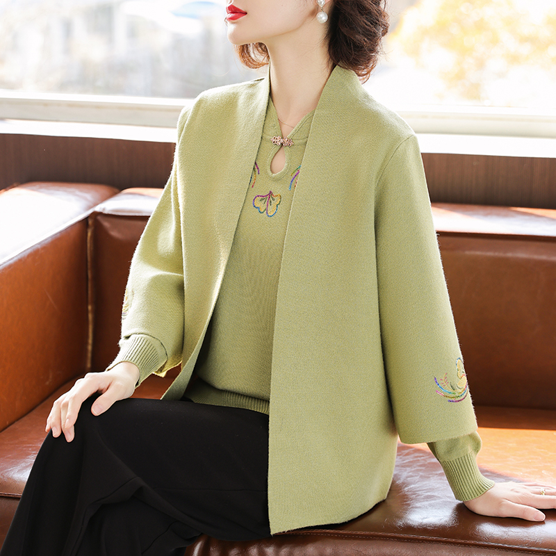 妈妈春秋针织外套洋气高贵夫人开衫上衣两件套中老年女装春装新款