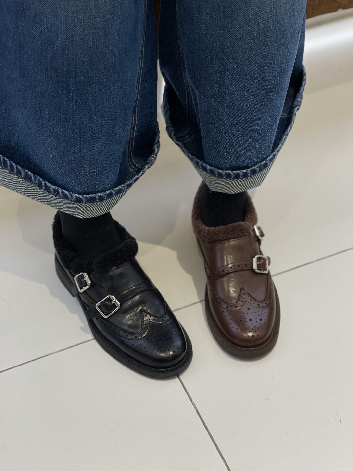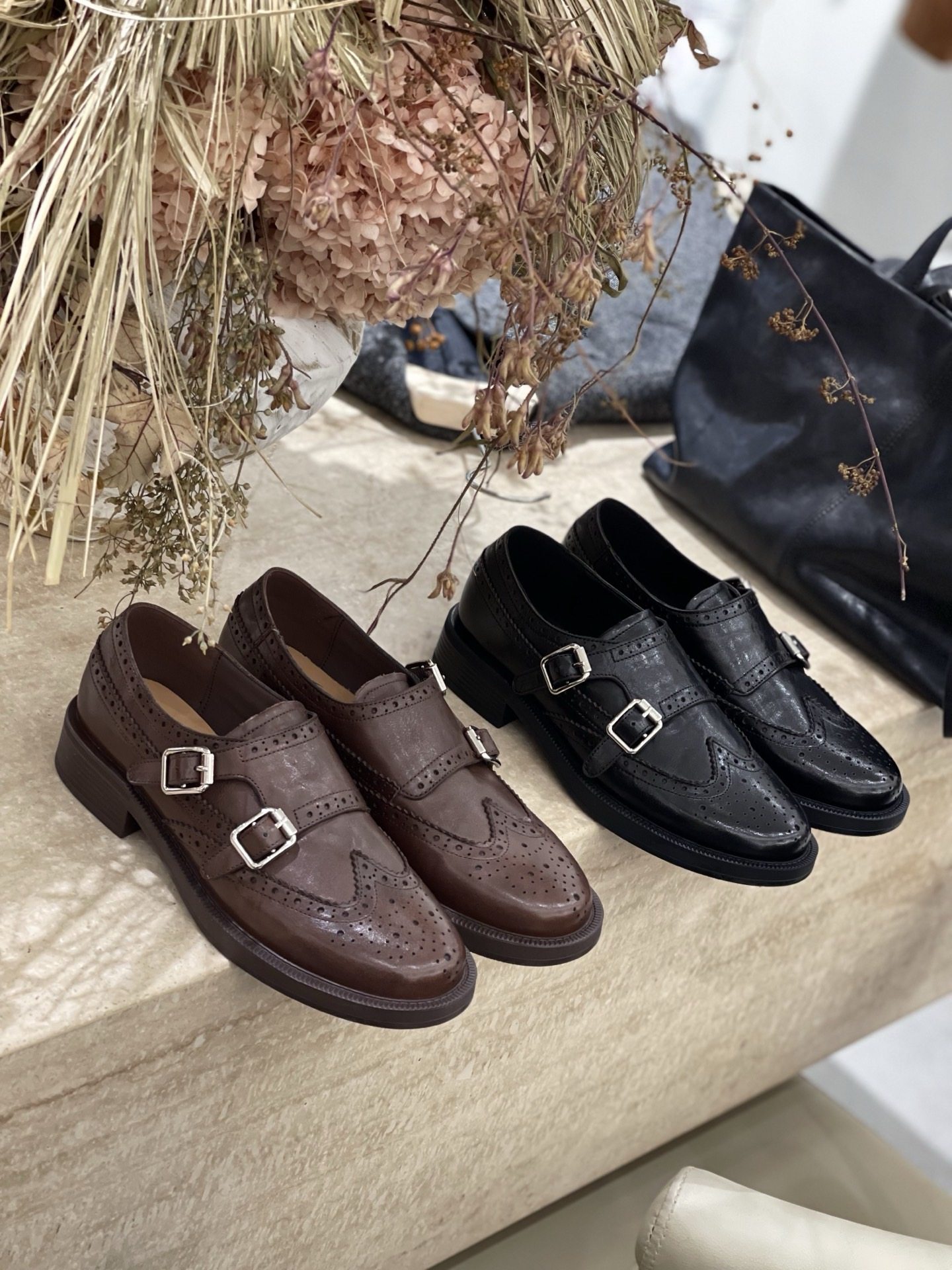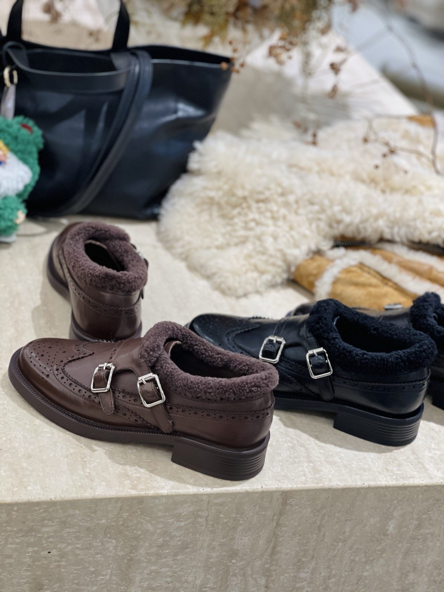 懒人单鞋软底复古英伦风圆头金属扣雕花复古乐福牛皮小皮鞋女加绒