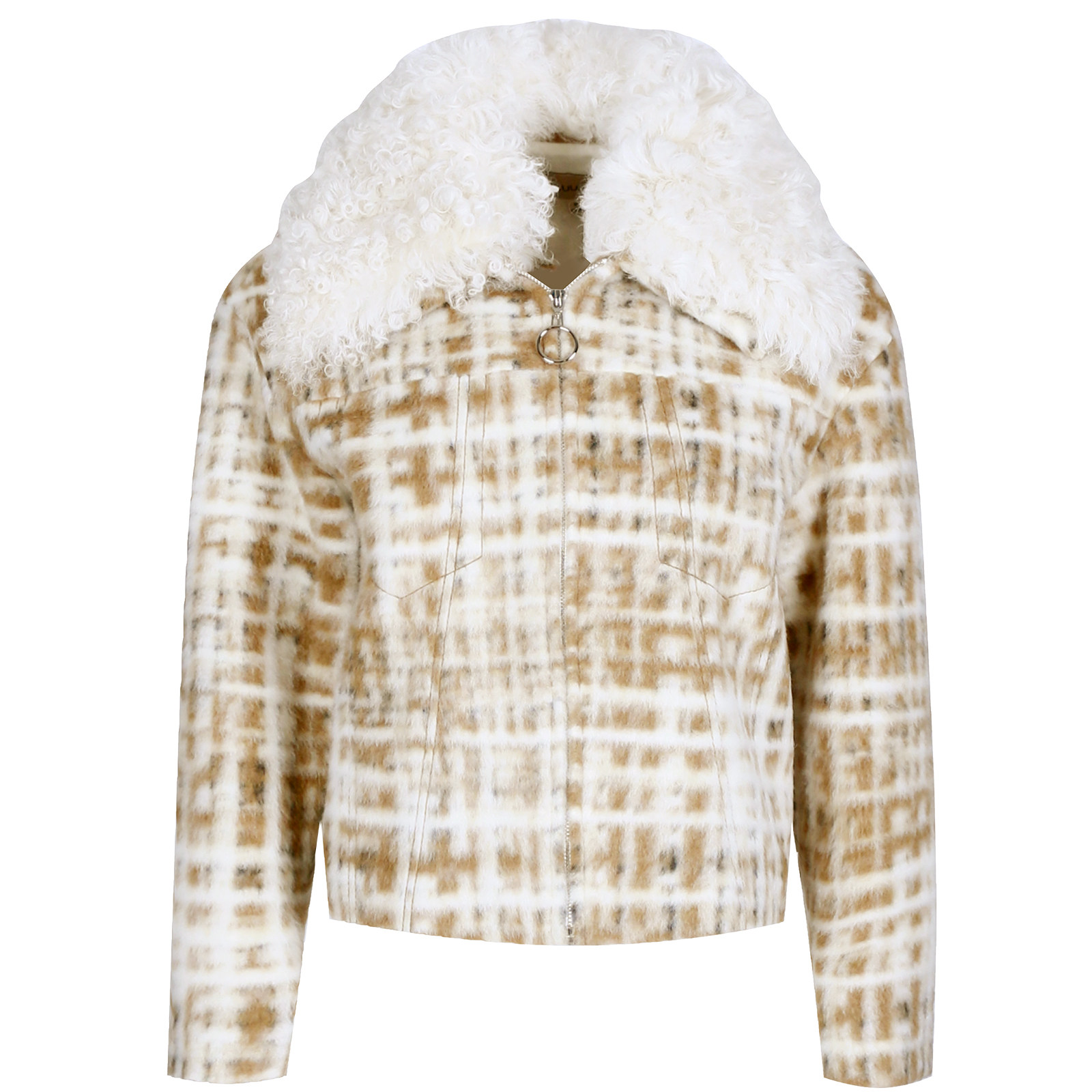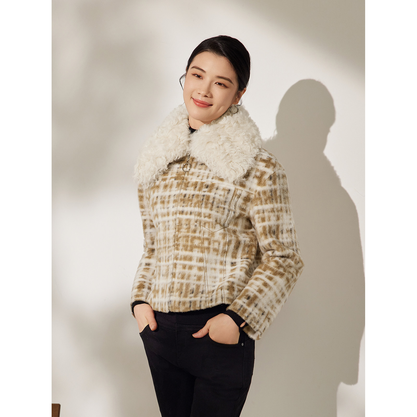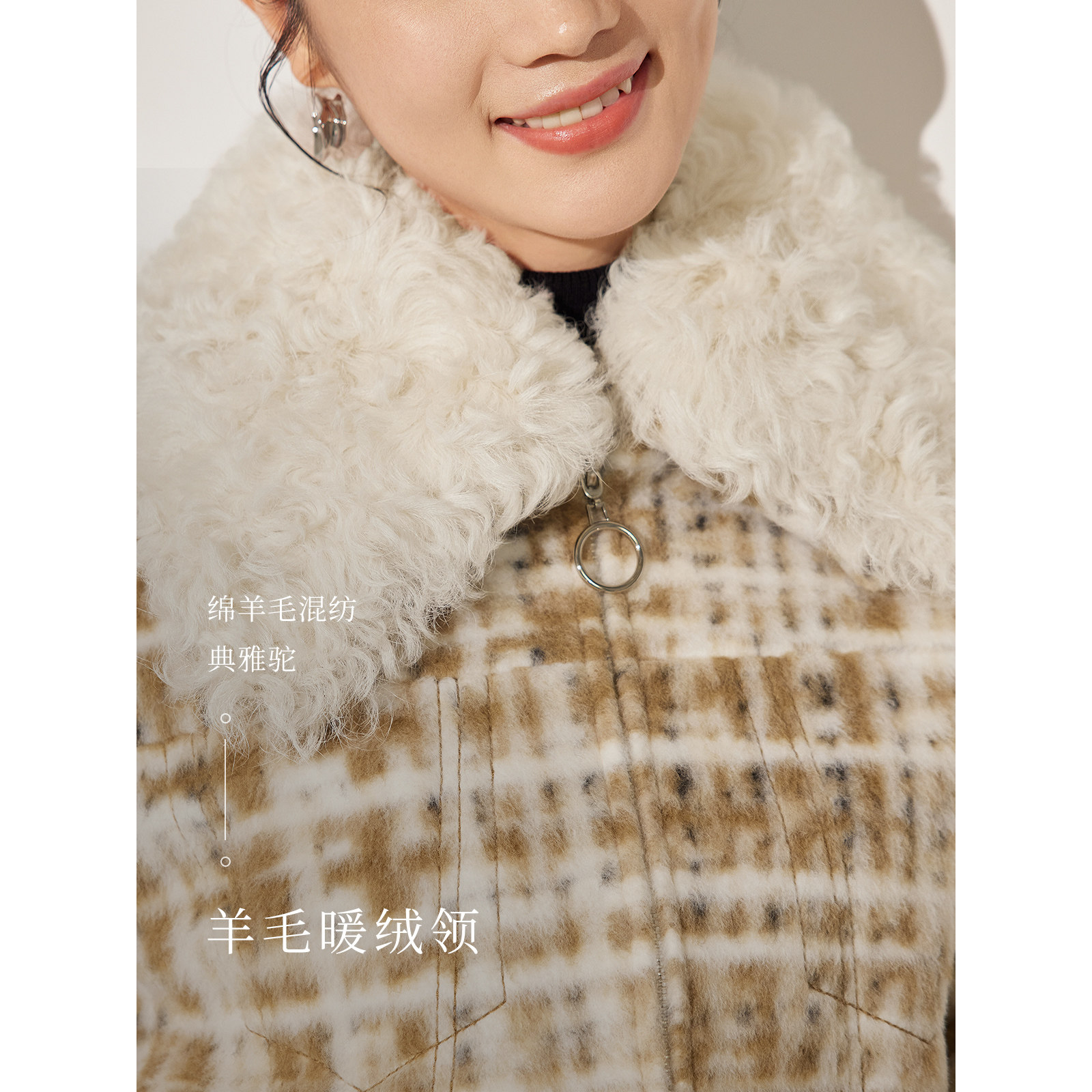 【艺术系穿搭】BBLLUUEE粉蓝衣橱商场同款复古格纹羊毛短款外套女