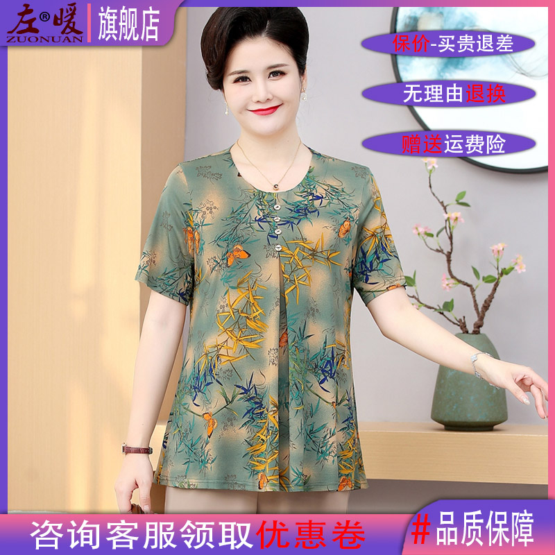 胖奶奶大码短袖中老年女装妈妈夏季洋气上衣太太加肥宽松t恤套装