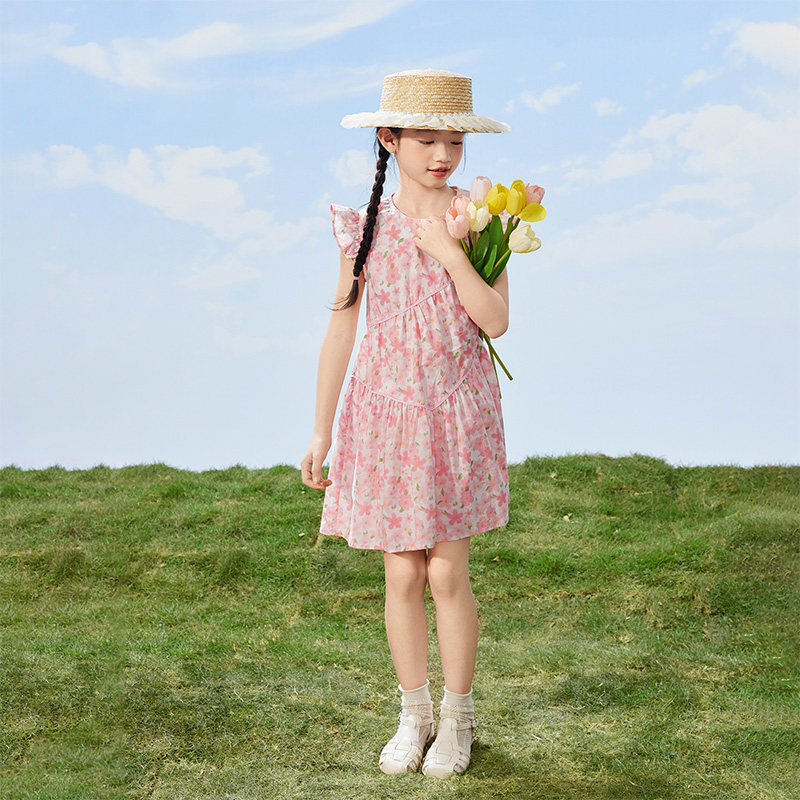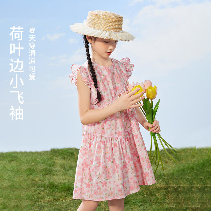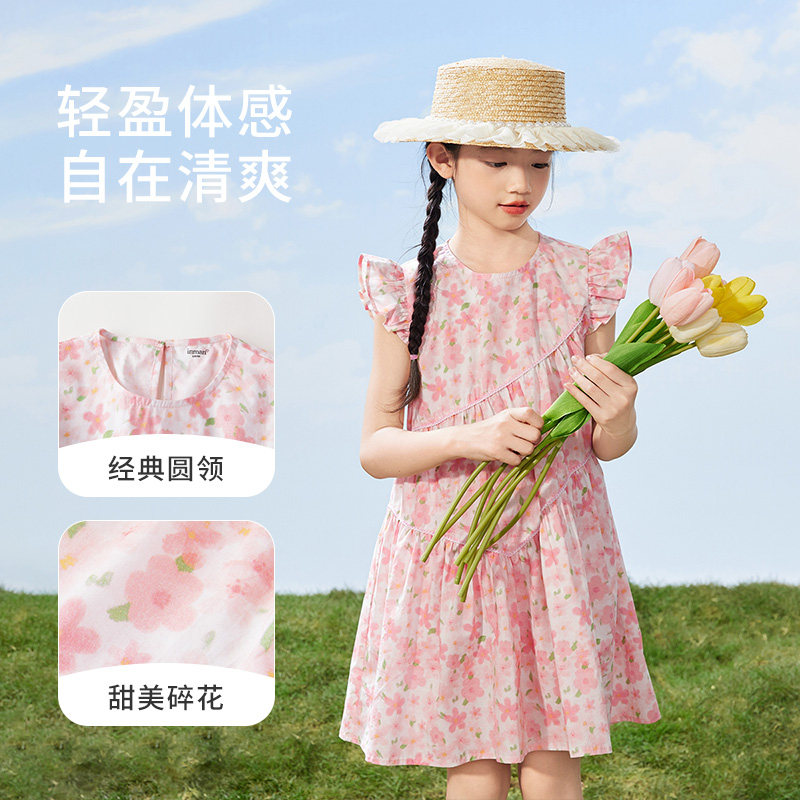 茵曼女童连衣裙甜美碎花夏季儿童中大童纯棉透气无袖长裙洋气裙子