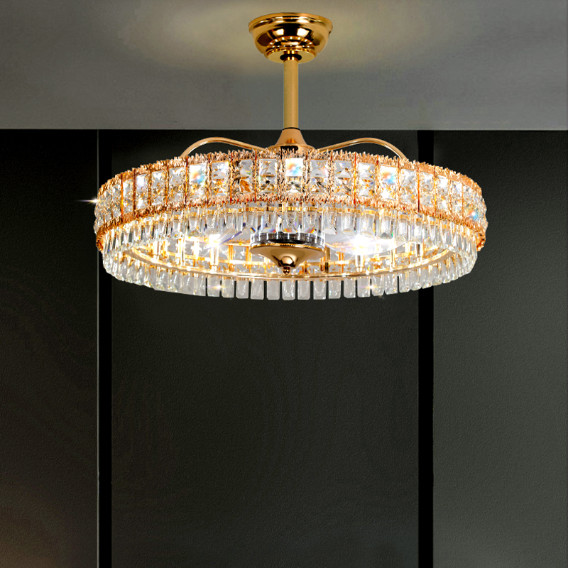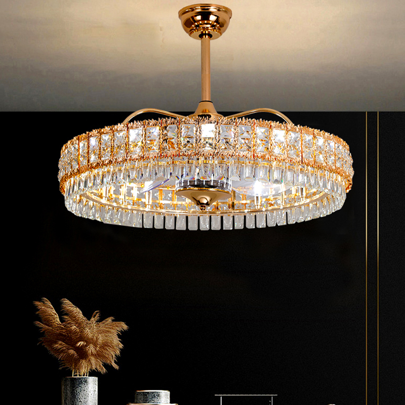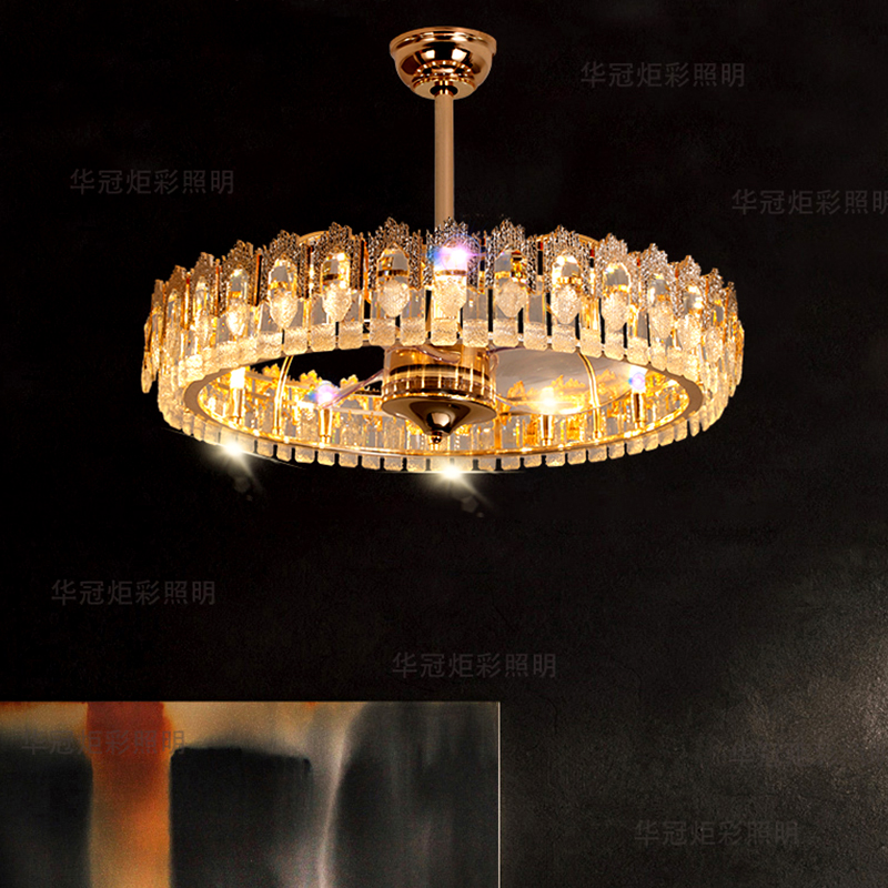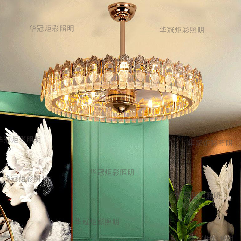 水晶风扇餐厅吊灯新款静音后现代豪华网红轻奢客厅灯家用中山灯具