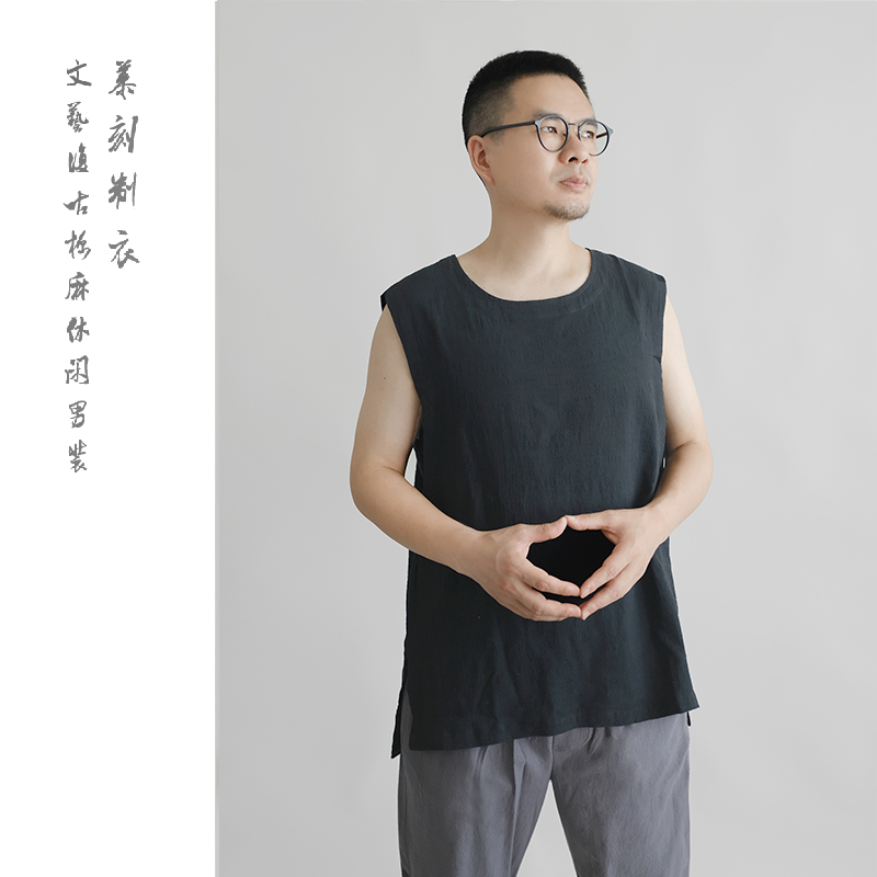 棉麻无袖背心大码汗衫男中国风宽松薄款圆领T恤坎肩中式亚麻短袖