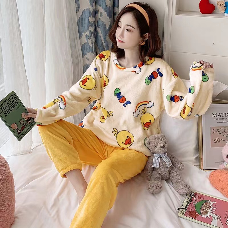 珊瑚绒睡衣女冬季加绒加厚法兰绒可外穿两件套女款秋冬家居服保暖